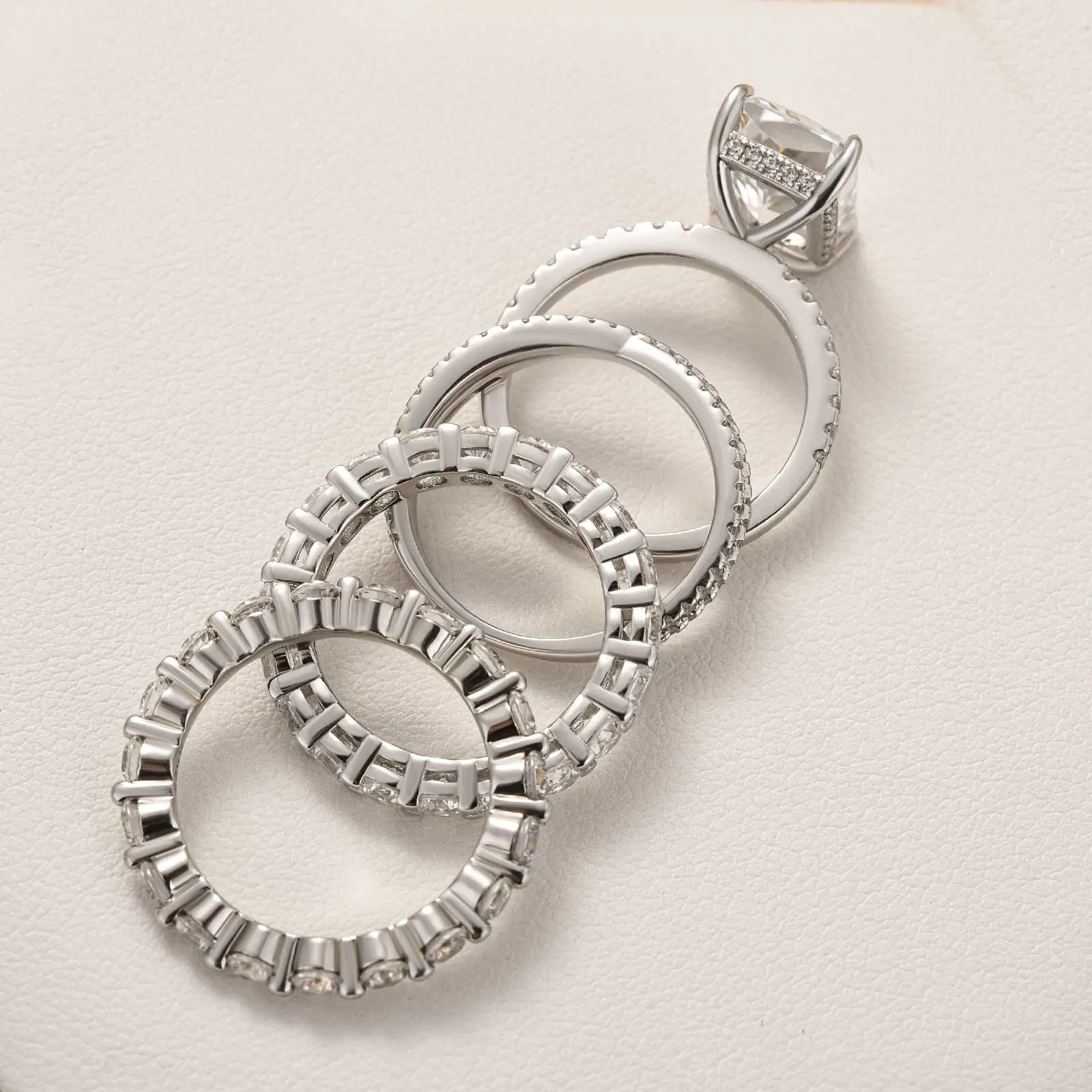 RODIFFY 4.0Ct Radiant Cut 4PC Wedding Ring Set for Women,5A Cubic Zirconia 925 Sterling Silver Bridal Set