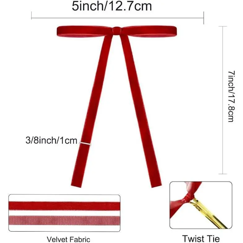 24 Pcs Velvet Bows for Christmas Tree, Red Velvet Christmas Tree Bows Door Garland Decor Vintage Wreath Bow,Suitable for Xmas Home Decor Wedding Outdoor Indoor (Red)