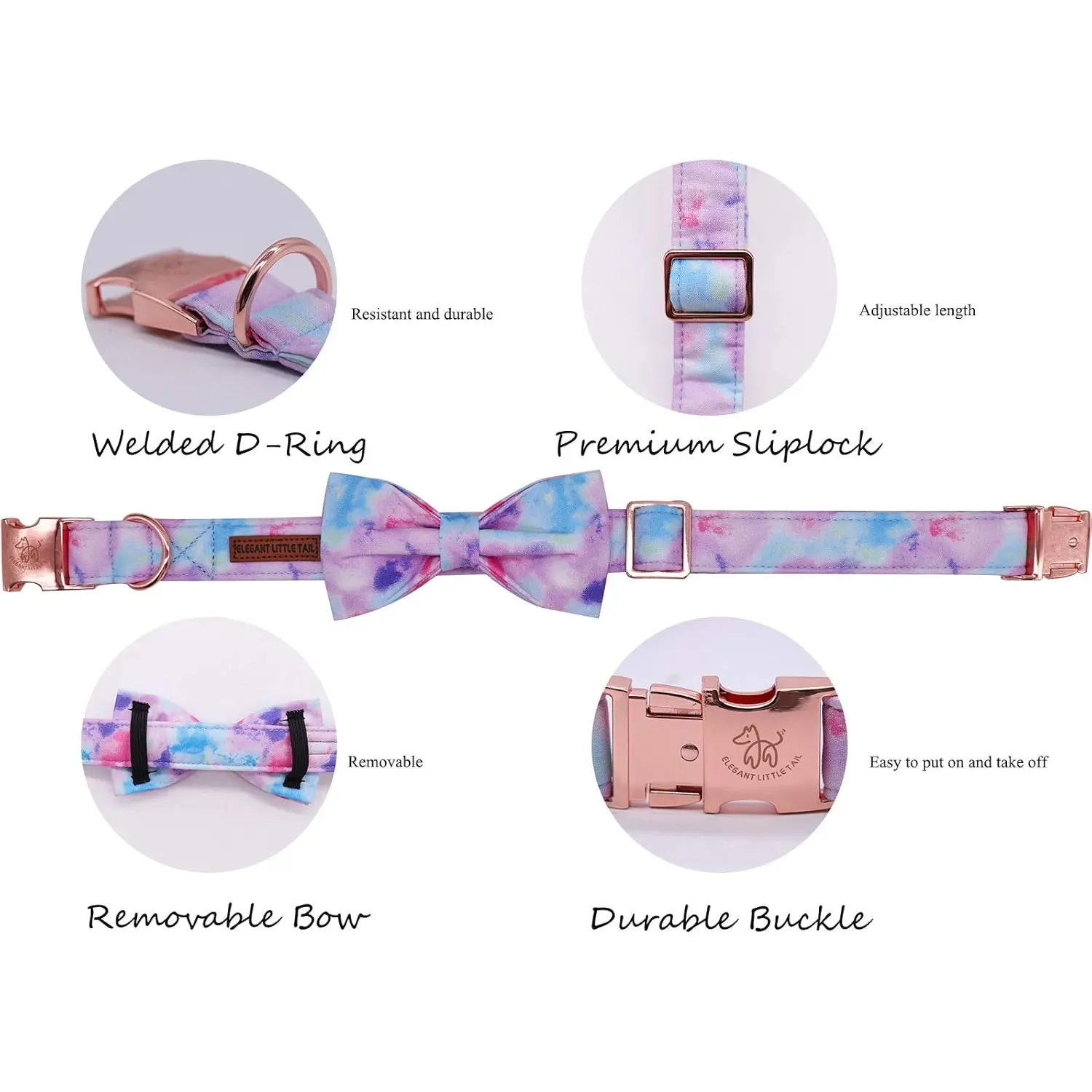 5. Elegant Little Tail Dog Collar with Bow, Soft&Comfy Bowtie Dog Collar, Adjustable Pet Gift Collars for Small Medium Large Dogs Elegant little tail