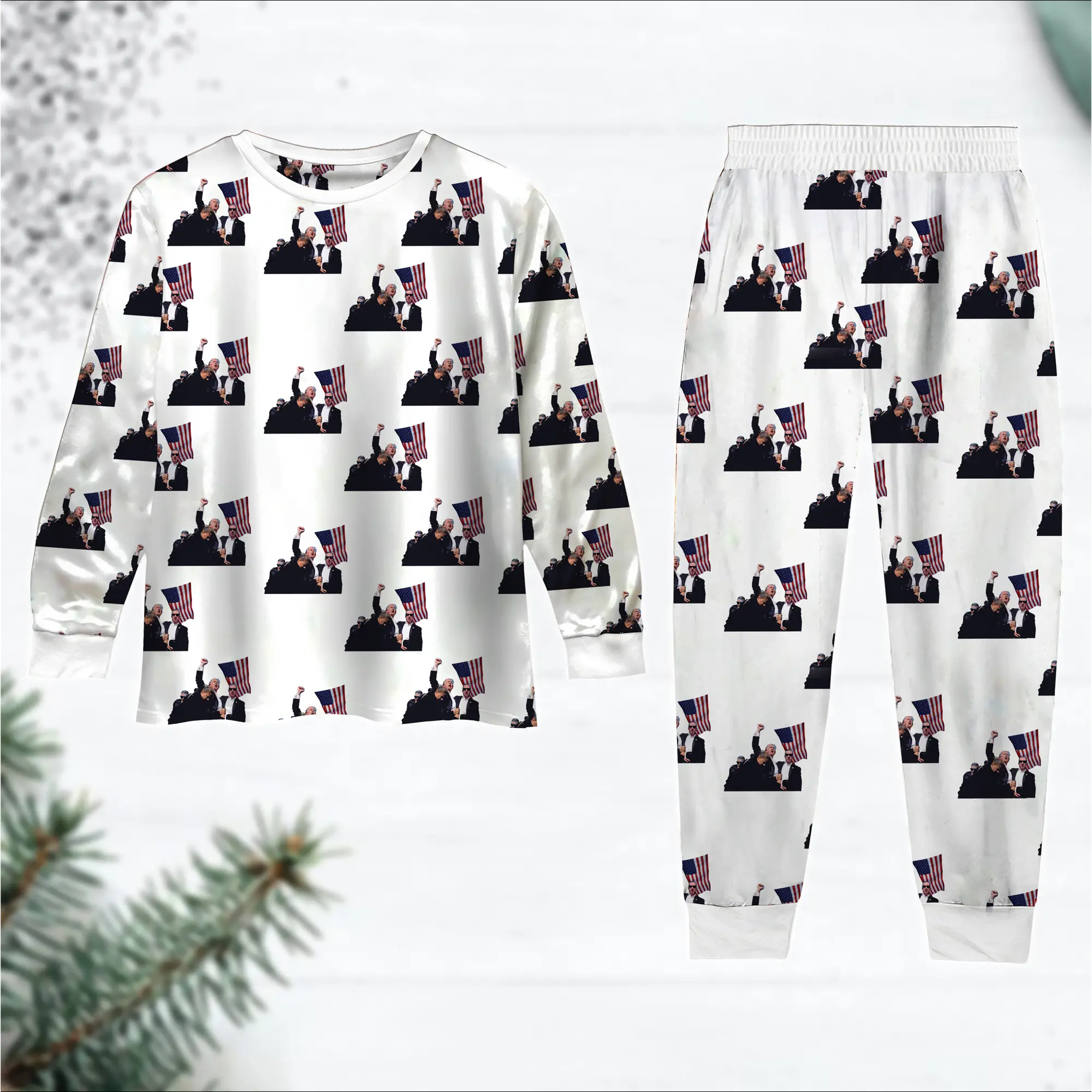Trump Christmas Pajamas Set, Long Sleeve Trump Christmas Pajamas