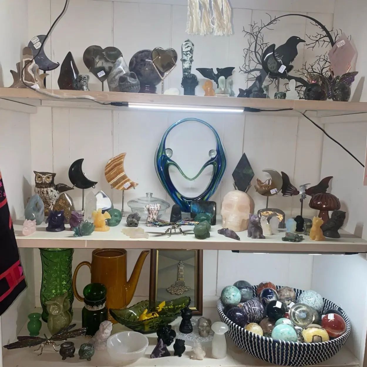 $200 Box: At least one of the following: 1 Larger statement piece (Example large moon with stand), Diamond or Wand with stand, Sphere 55mm or larger, carving (example 4" skull or elephant), multiple towers, palms, raw pieces, rings, bracelets, and more