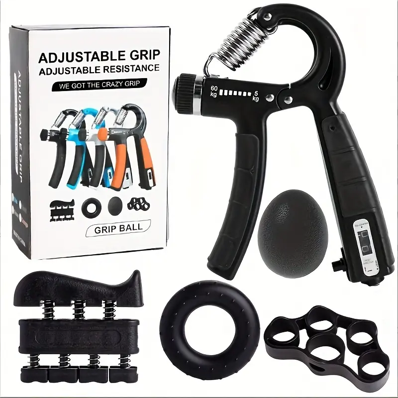 Hand Grip Enhancer Fitness Set - 5-Piece Set with Adjustable Forearm Grip, Finger Extender, Grip Ring & Stress-Relieving Home Gym Kit Workout Equipment Calisthenics Tools Home Gym Kit
