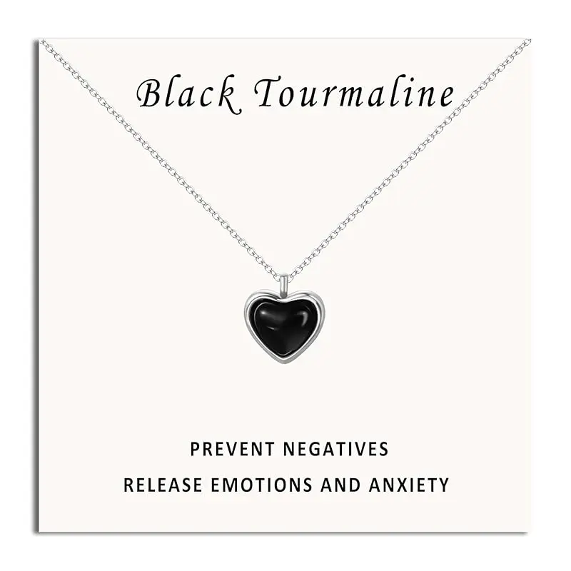Black Heart Necklace: The Black Tourmaline Heart Necklace provides you with constant happy energy while you wear it, you'll feel a constant flow of good vibes and far from all the bad mood. Black necklaces are useful for deep thinking and discovering your true self. Black tourmaline is said to releasing your negativity and transforming it into positive energy.