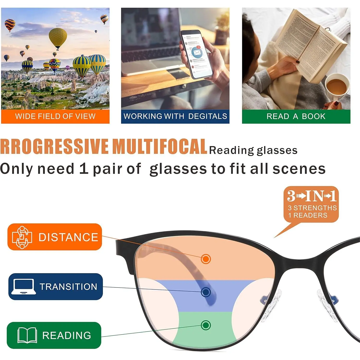 Progressive Multifocus Reading Glasses lens with no line bifocal Rimless frame gift for women