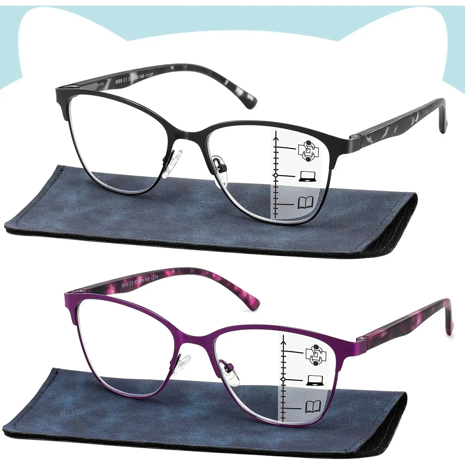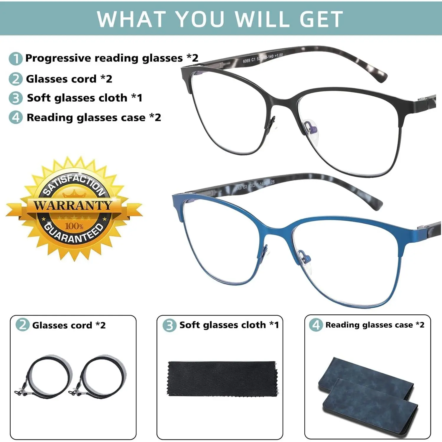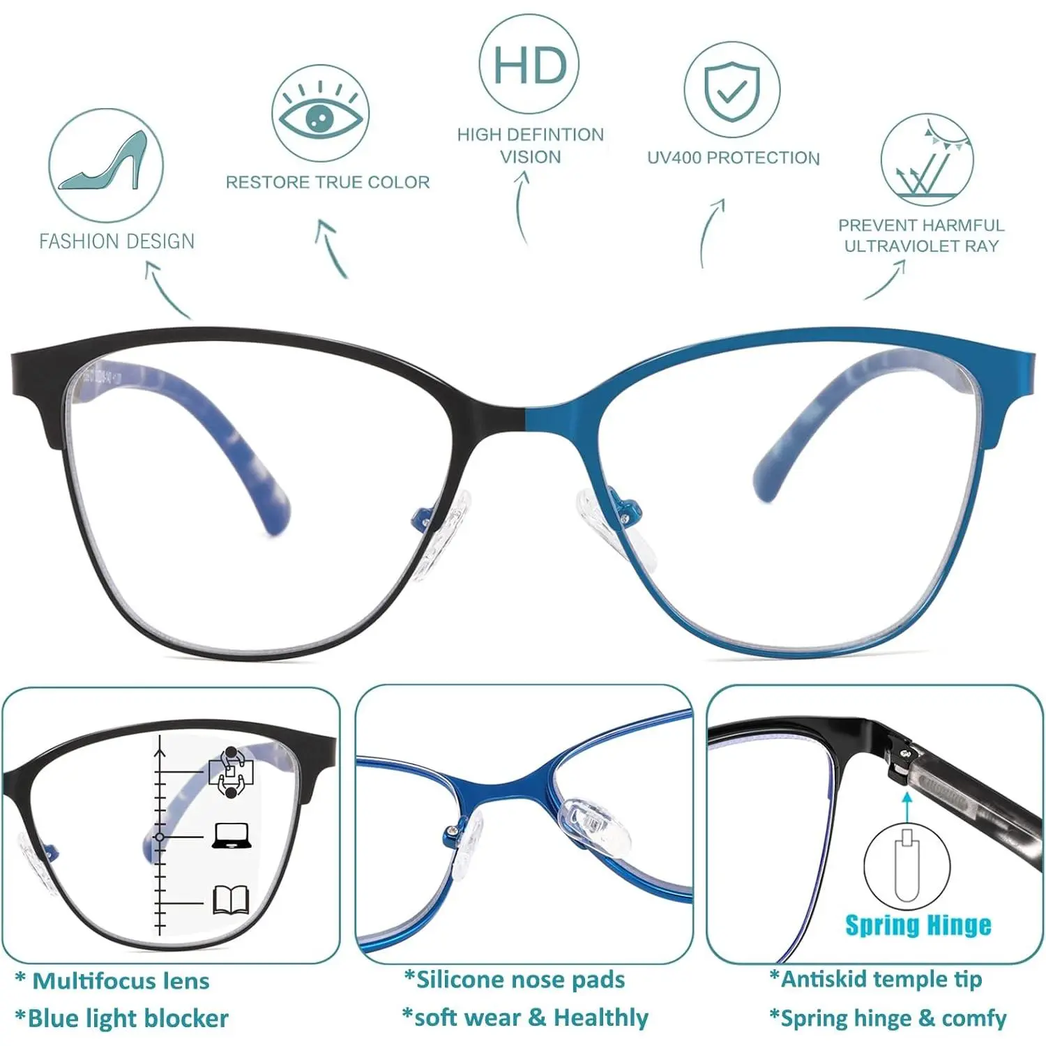 Multifocus Reading Glasses Women Progressive Multifocal Reader black + blue 2 packs
