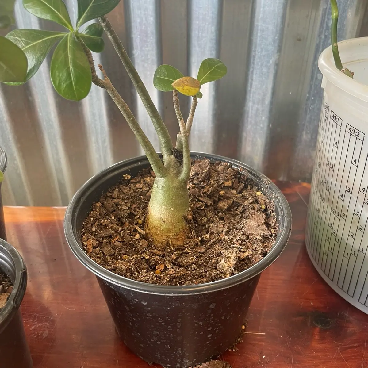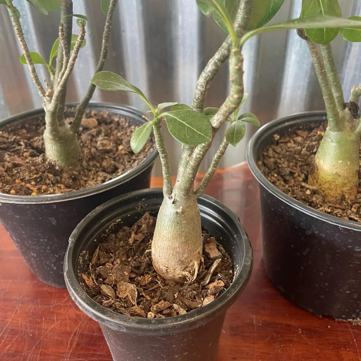 Desert rose 1 year old baby 7-10” no single stems. Adenium obesum. Colored flowers. Shipped in 4 inch pots no bareroots