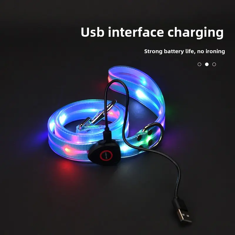 【Pet Essential】USB rechargeable luminous leather belt LED flashing collar with adjustable brightness, extremely cool. christmas collar light up Adjustable LED iyoshop dog harness