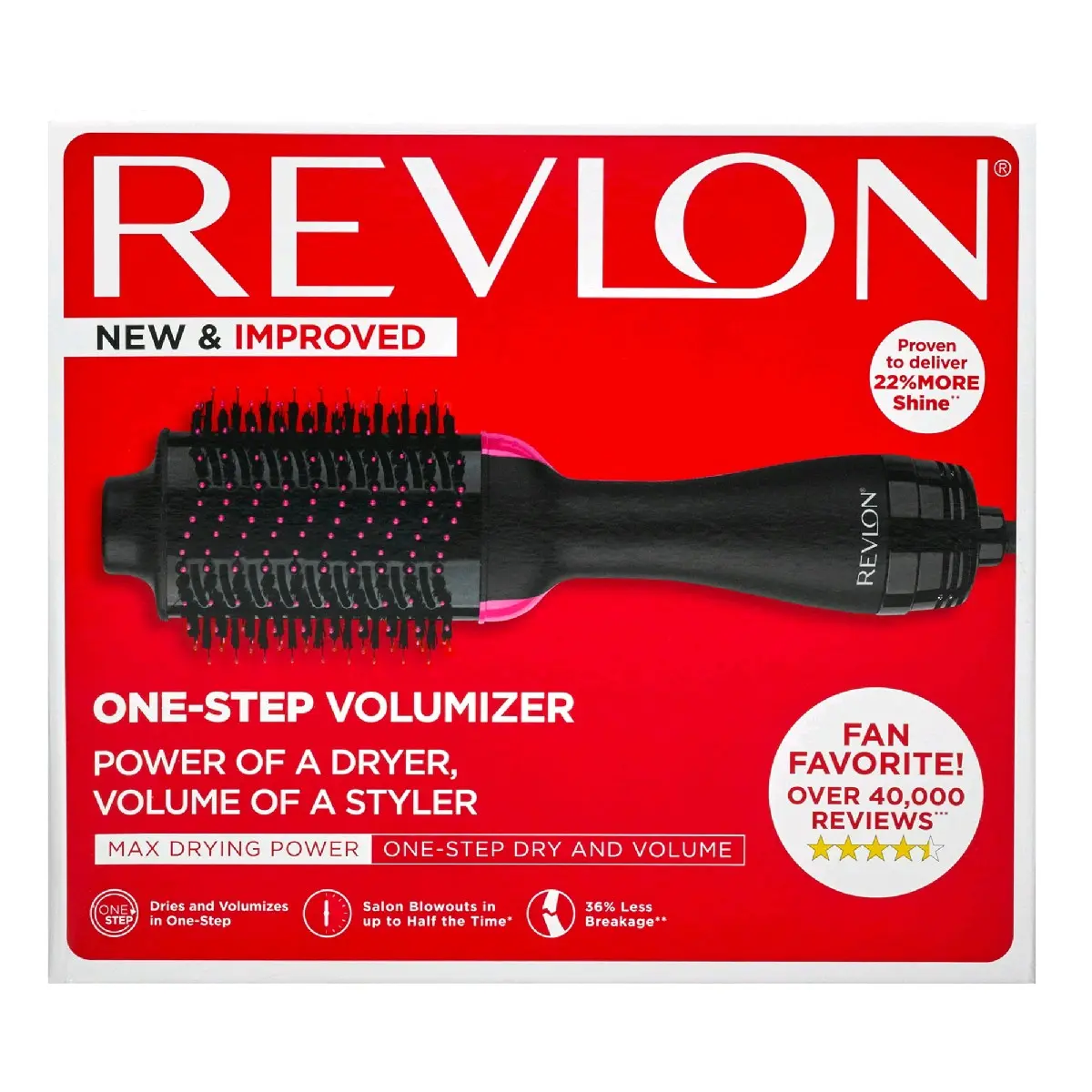 The Revlon One-Step Volumizer 1.0 Enhanced is a designed hair dryer + Hot Air Brush to deliver gorgeous volume and brilliant shine in a single step. The unique non detachable oval brush design smooths hair while the rounded edges quickly create volume at the root for beautifully full-bodied bends at the ends in a single pass. The brush is designed with Nylon Pin and Tufted Bristles for detangling, improve volume and control. Styling flexibility is guaranteed with 3 Heat/Speed Settings and a Cool Option built to provide just the right amount of heat. Unlike conventional hair dryers, this volumizer can be placed closer to the scalp for lift. Boosted by Ionic Technology hair dries fast and helps reduce heat damage. The One Step Unit is designed for 120V USA outlets only, we do not recommend use of a voltage adapter or converter, as it will damage the unit. Note wattage will vary depending on the location of use.