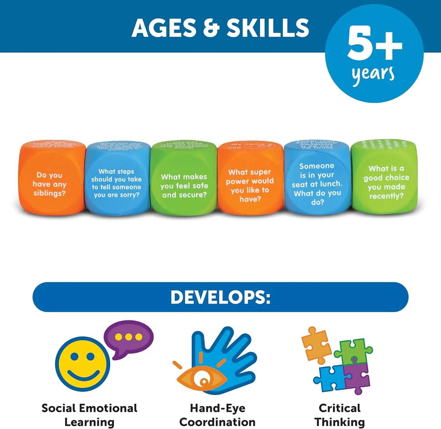 Learning Resources Let's Talk! Cubes, 6 Cubes with 36 Prompts, Ages 5+,Conversation Cubes, SEL Therapy,Back to School Supplies,Teacher Supplies