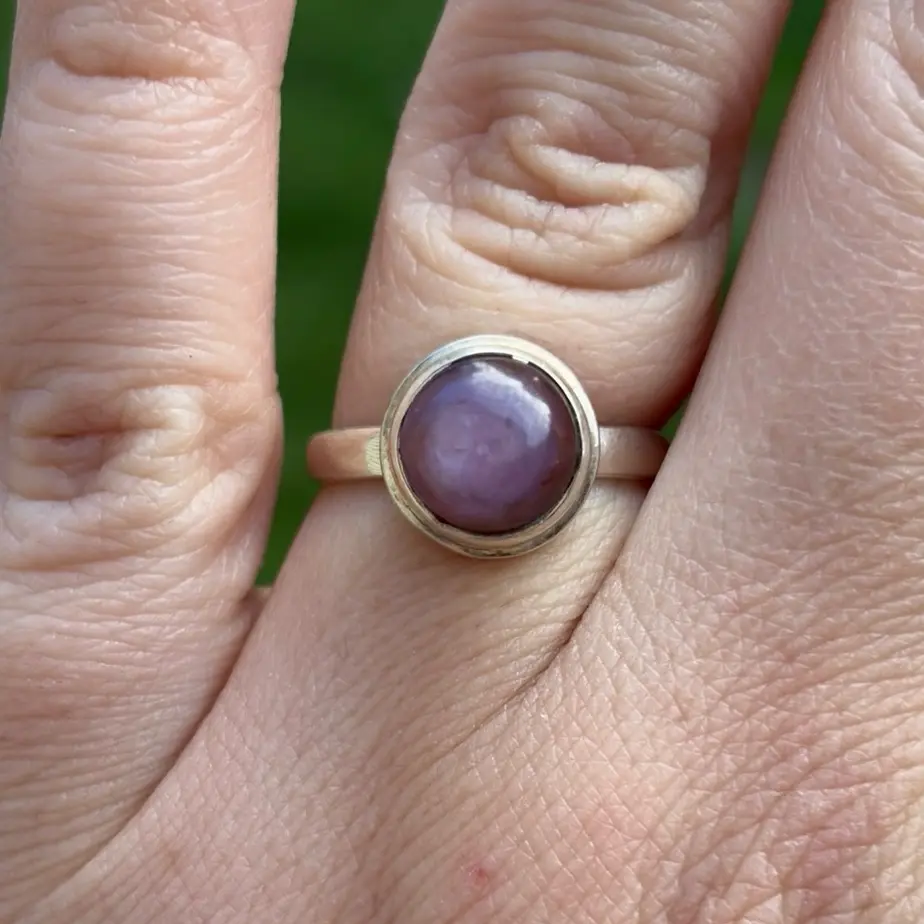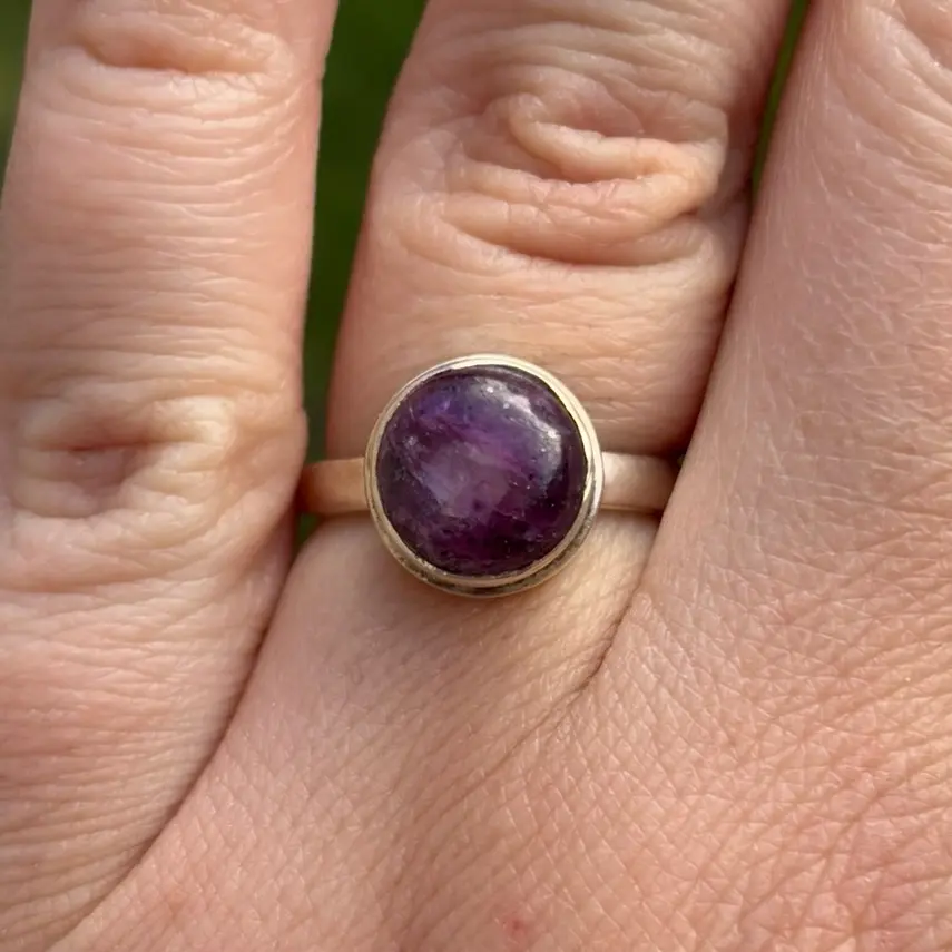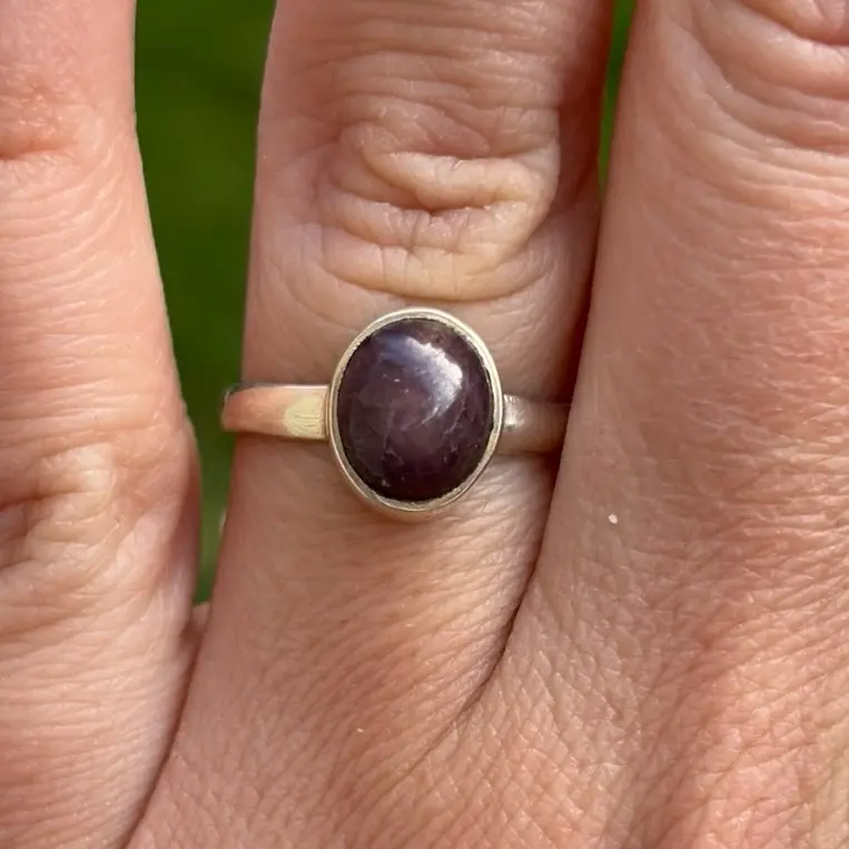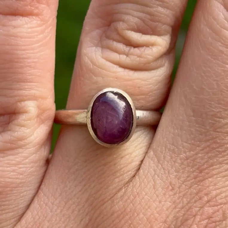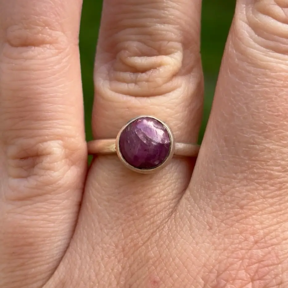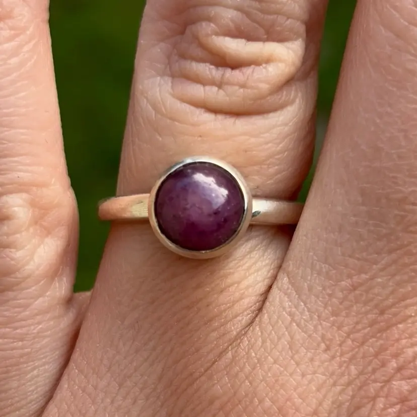 The design of the ring is simple yet elegant, making it suitable for both casual and formal occasions. The ring is a perfect addition to any jewelry collection and is sure to become a cherished piece for years to come. Whether you are looking for a gift for a loved one or a special treat for yourself, this sterling silver ring with a natural star ruby cabochon is sure to impress.