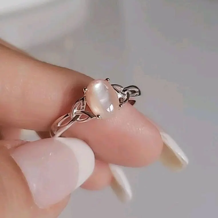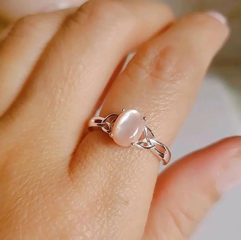 This ring is a meaningful and elegant piece that combines the beauty of the mother of pearl with the timeless symbolism of Celtic design, making it a perfect gift for someone special or a beautiful addition to your own collection.