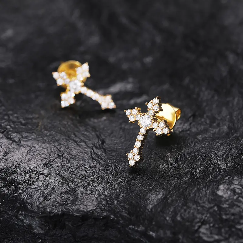 【#EE235】UCCIYO 18K Gold-Plated Cross Stud Earrings with Lab-Grown Moissanite Synthetic Moissanite Earrings For Women 925 Sterling Silver Stud Earring Men Hip Hop Jewelry Couple Gift