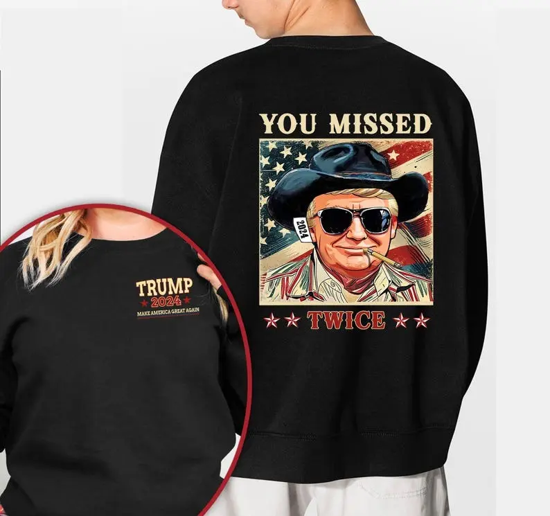 Western Trump Cowboy T-Shirt You Missed Trump Shirt 2 Side Assassination Attempt Trump Tee Trump Presidential Election Stand With Trump 2024, T-Shirt, Sweatshirt, Hoodie, Gift for woman, Gift for man, Gift for fan