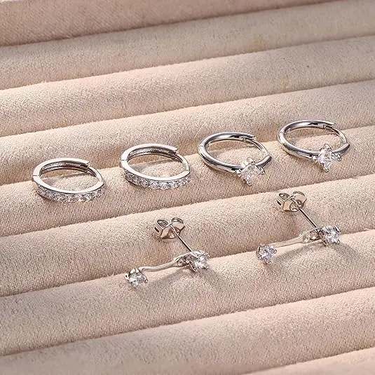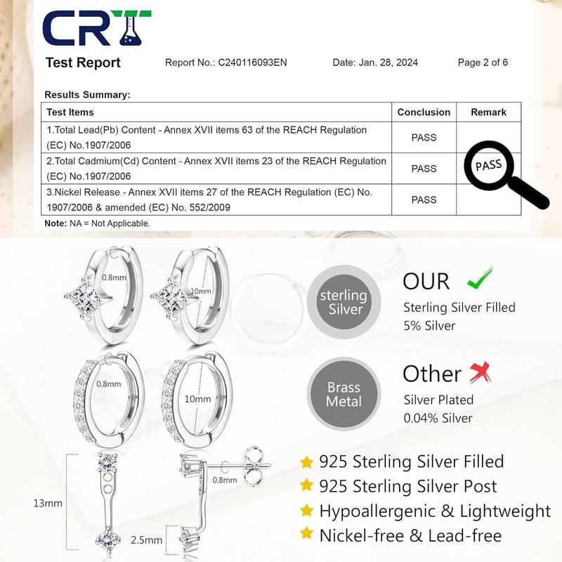 ·Sterling Silver Earrings : The hoop stud earrings sets are crafted of pure 925 sterling silver with s925 stamped, thicker silver plated over the sterling silver, give the sterling silver earrings a brilliant shine, better color resistance. Sterling silver jewelry is nickel free and lead free, effectively hypoallergenic, making this a great choice for sensitive skin