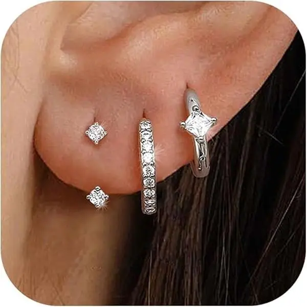·Stack Earrings Specifications : The sterling silver earrings sets for multiple piercings are simple yet classial, can be used as cartilage earring, conch hoop earring, daith jewelry, helix earrings, rook earrings hoop, stack earrings, tragus hoop piercing para la nariz. Huggie earrings inner diameter: 10mm, ear jacket: 13mm(can be ajusted), 0.8mm(20g) ear post