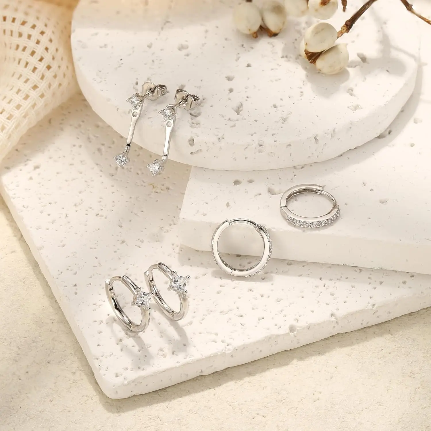 ·Modern Trendy Earrings Pack : Add style to a basic look with this solid 925 sterling silver earrings set. A dainty silver earrings with charm elegance for those who value earrings for sensitive ears. This timeless essential is the perfect gift idea for wife, mother, sister, lover, best friend or for you, give them special light luxurious fine jewelry to wear all the day