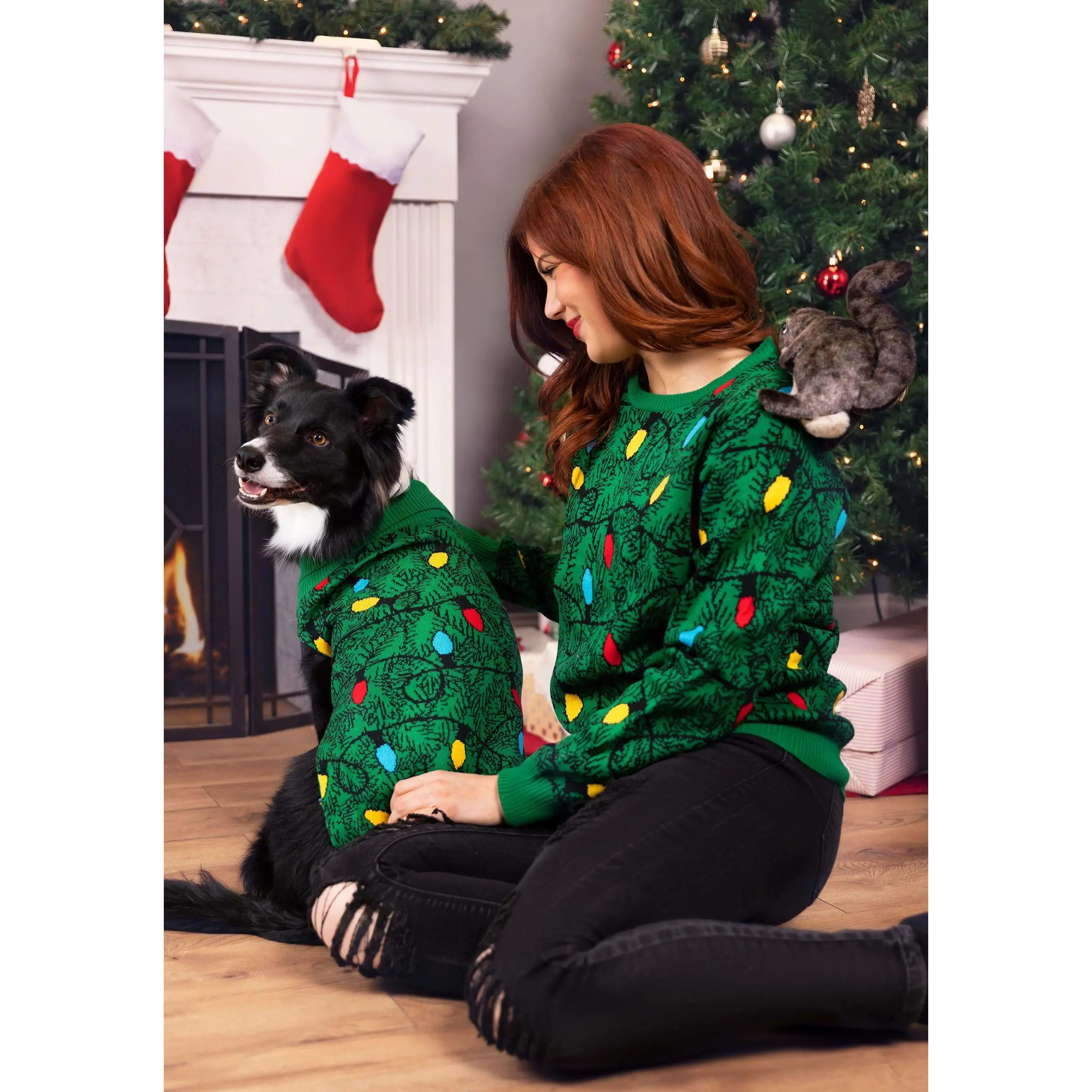 Your pup will get all the presents when he or she is wearing this exclusive Christmas Tree Sweater for Dogs! The green slip-on sweater has a rib knit neckband and waistband, while the back is printed with pine needles and Christmas lights.