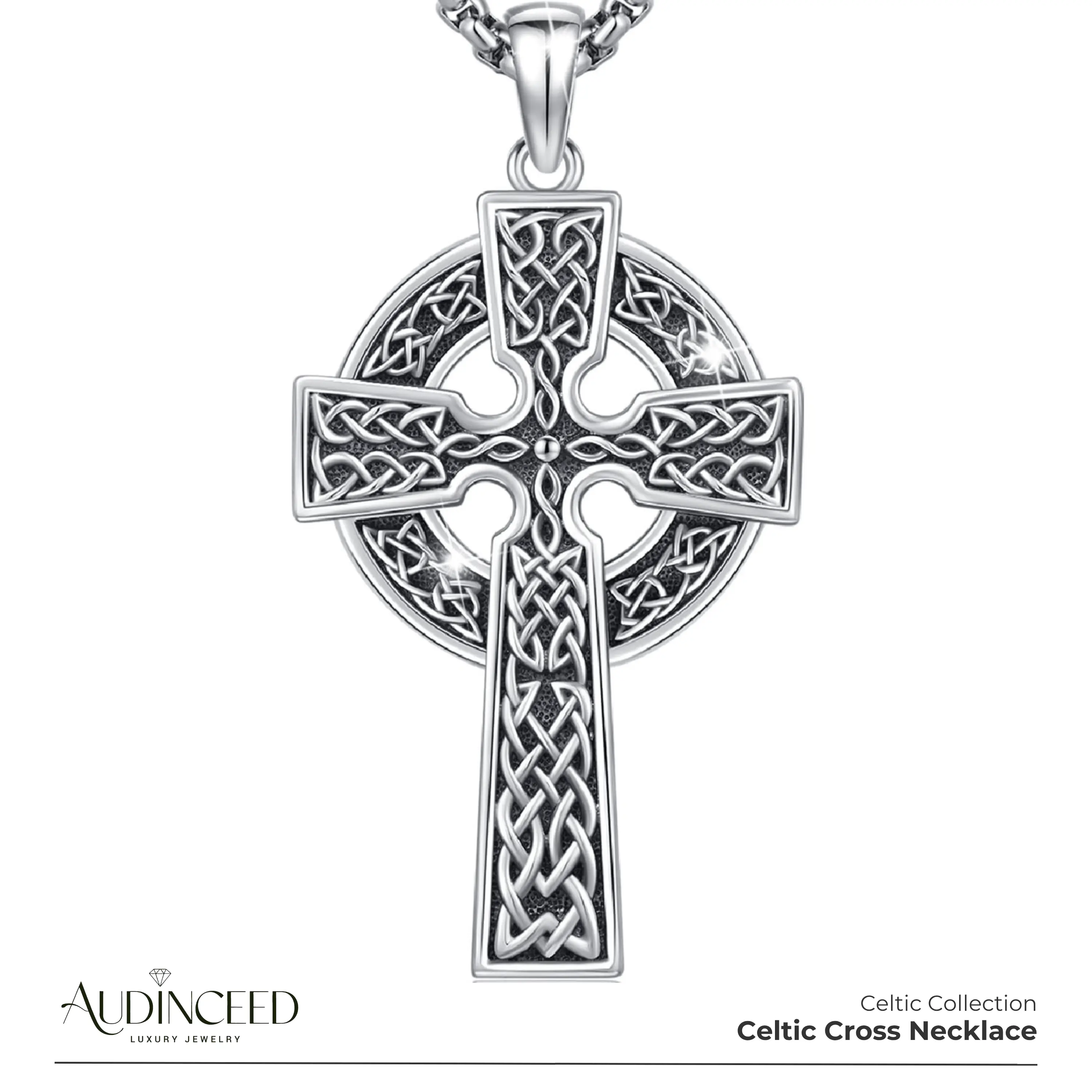 This Audinceed Celtic Cross Necklace is an elegant and meaningful accessory that combines traditional Irish design with modern craftsmanship. The stunning Celtic knot and crucifix design offers both beauty and deep symbolism. Ideal for men and women, this necklace is a perfect blend of style and spirituality.