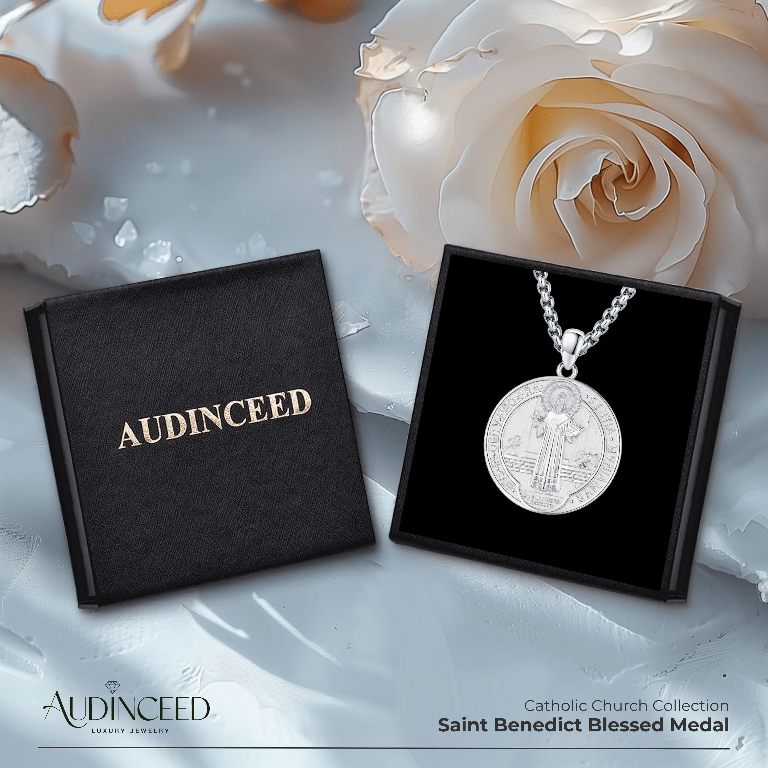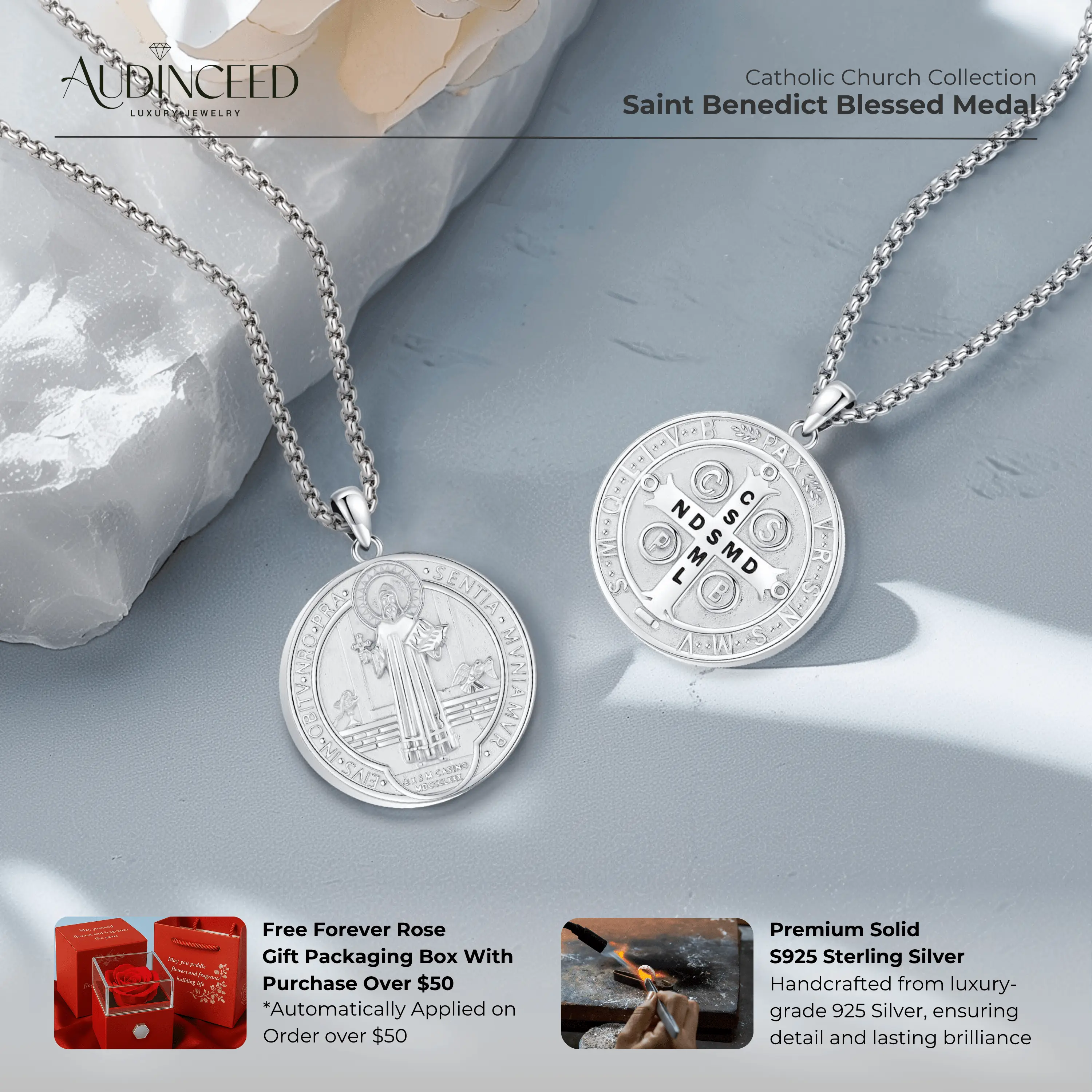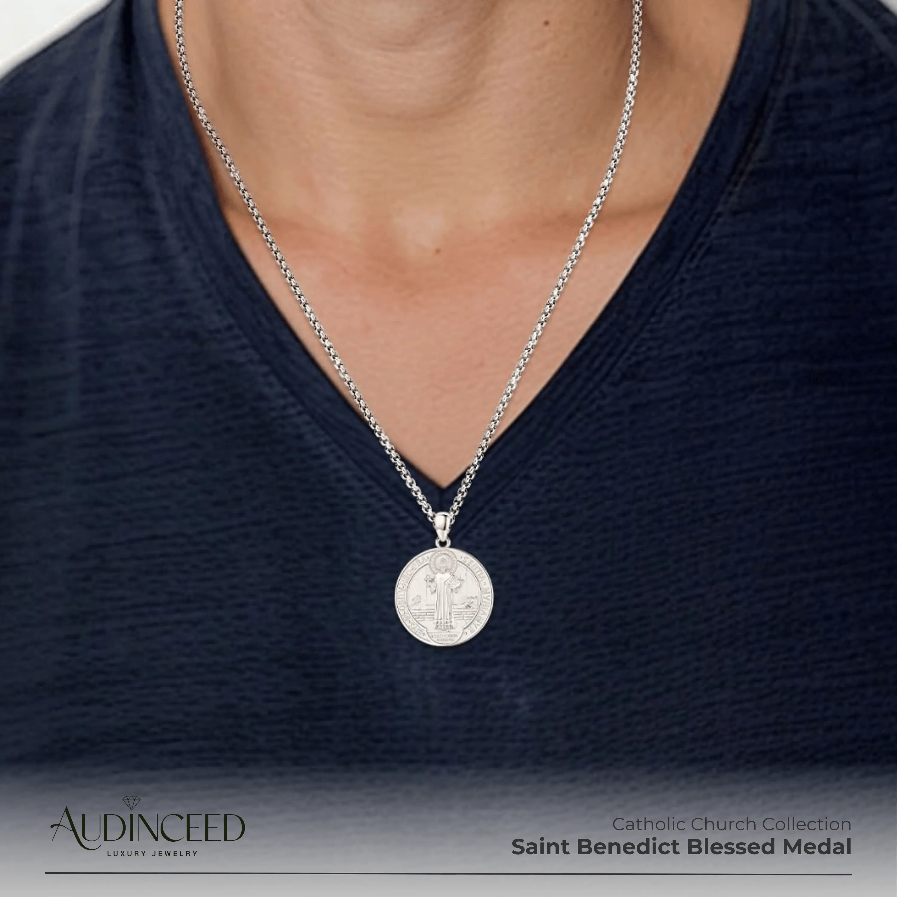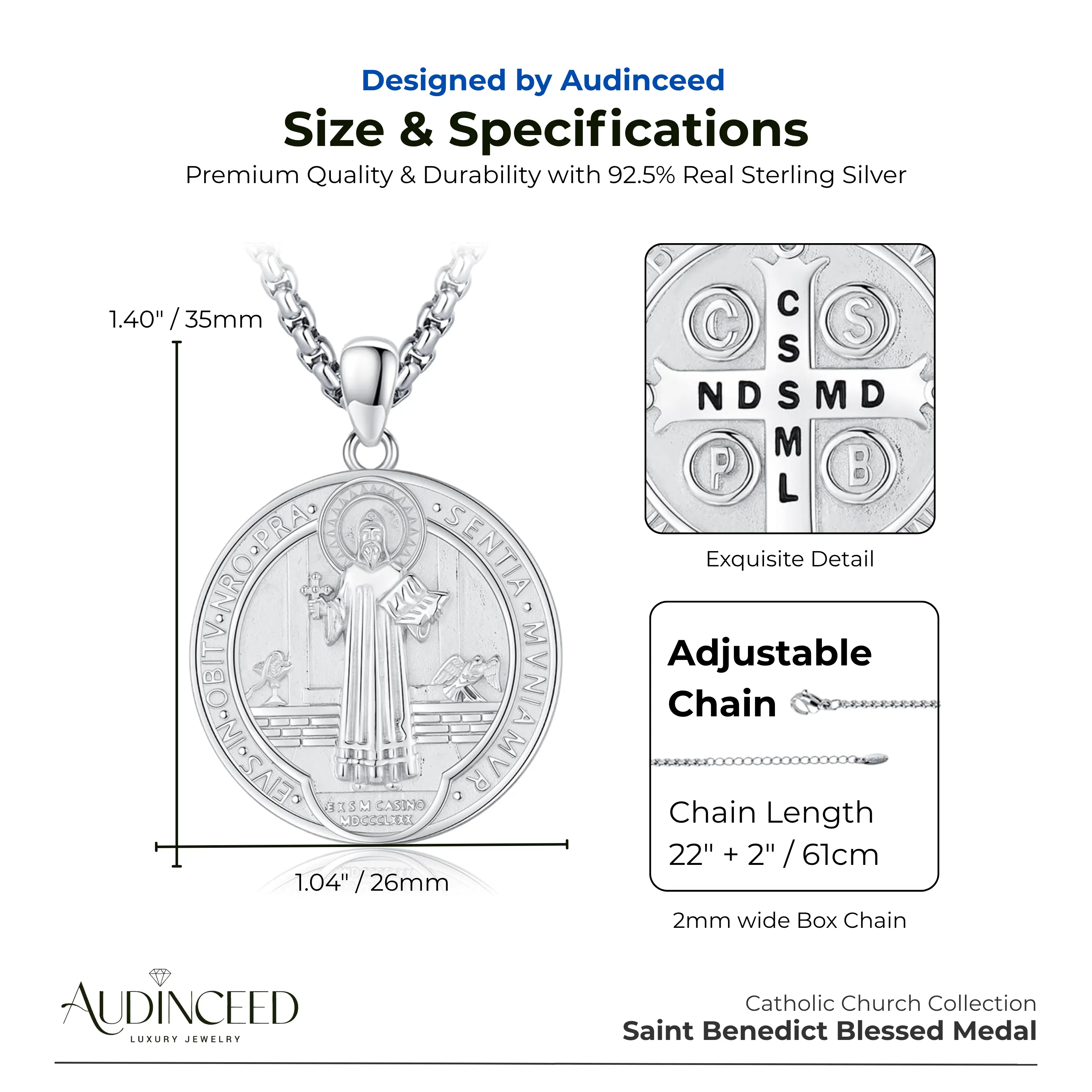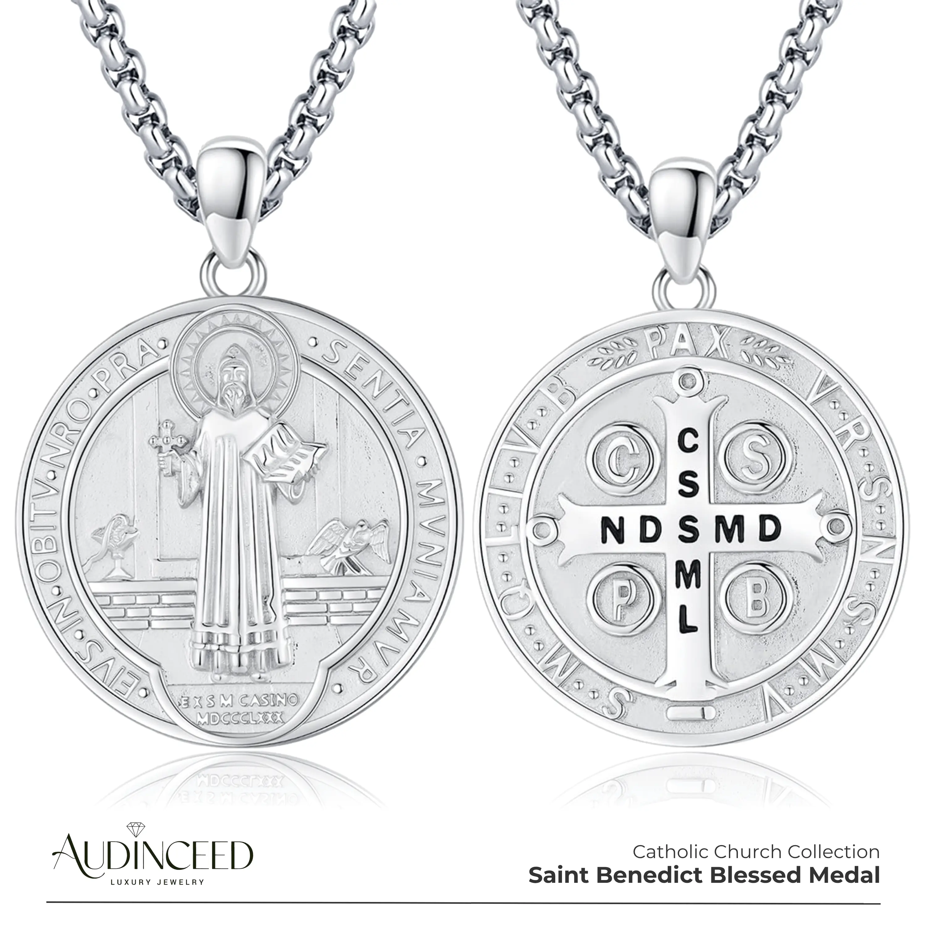 Audinceed St Benedict Medals for Men Women, 925 Sterling Silver Saint Benedict Necklace Pendant San Benito Medalla Protection Amulet Jewelry