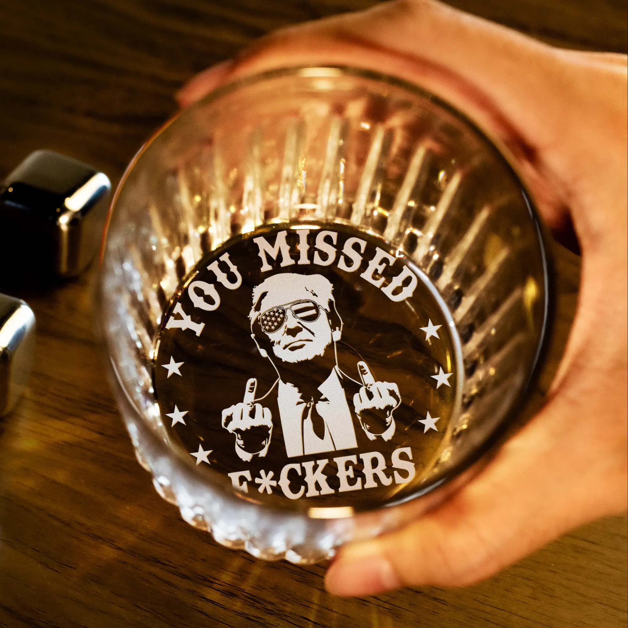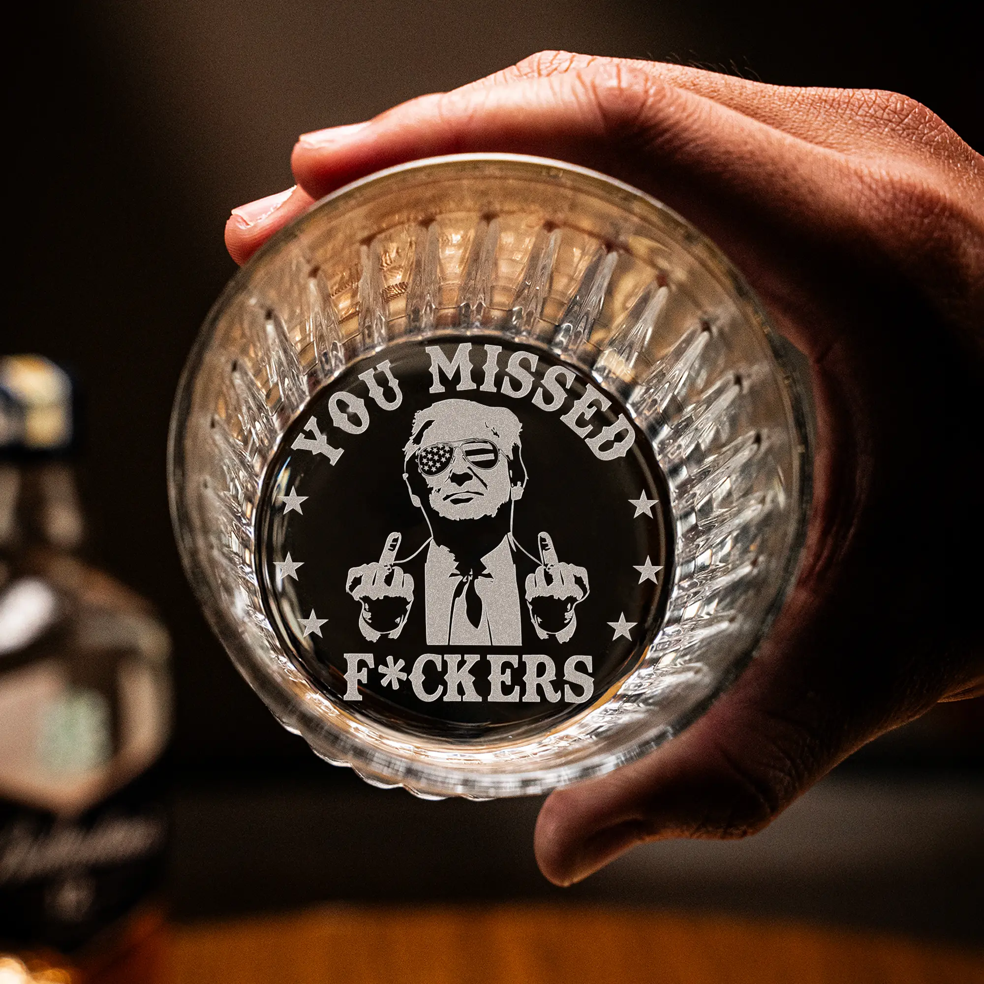 Engraved President 45 47 You Missed Crystal Whiskey Glass, MAGA 11oz Rock Glass Gifts for Men Drinkware