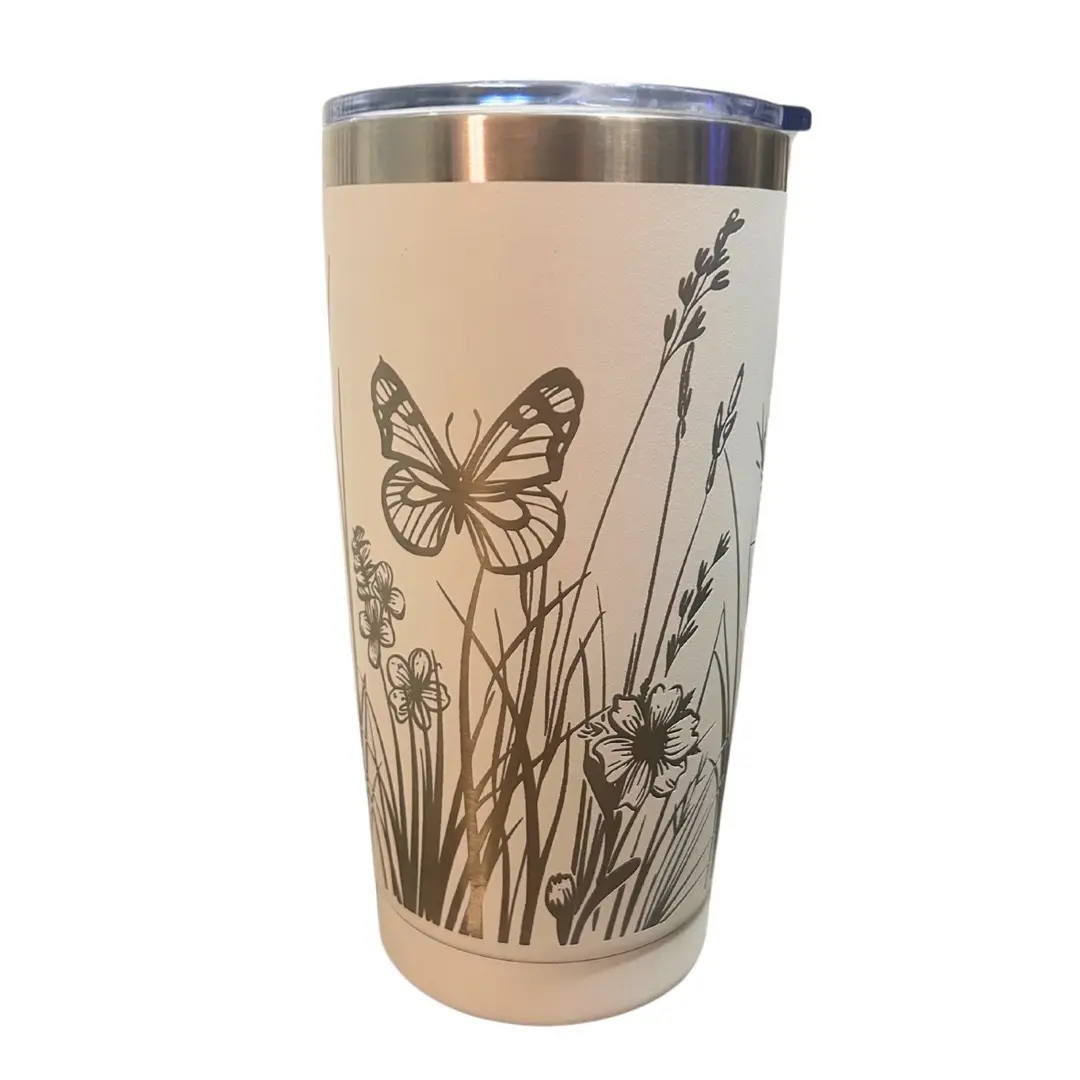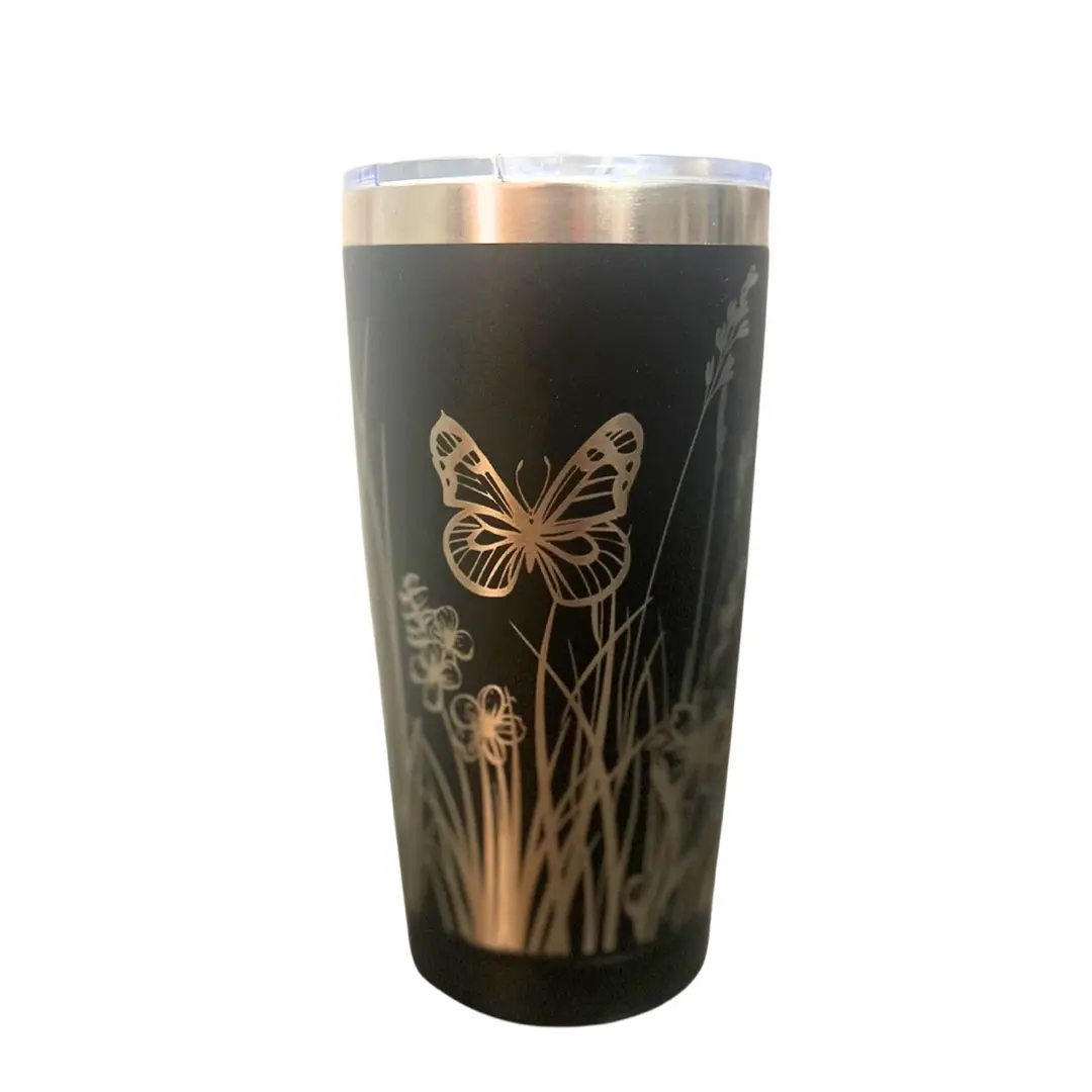 The tumbler features a beautiful butterfly design that adds a decorative touch. This tumbler is perfect for those who are always on the go and need a reliable and practical way to keep their drinks at the desired temperature.