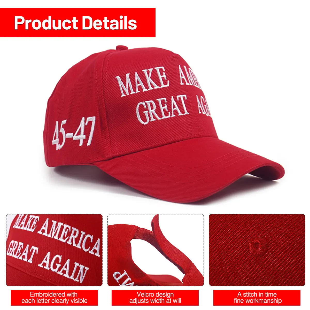 Trump 2024 45-47 MAGA Hat. This high-quality