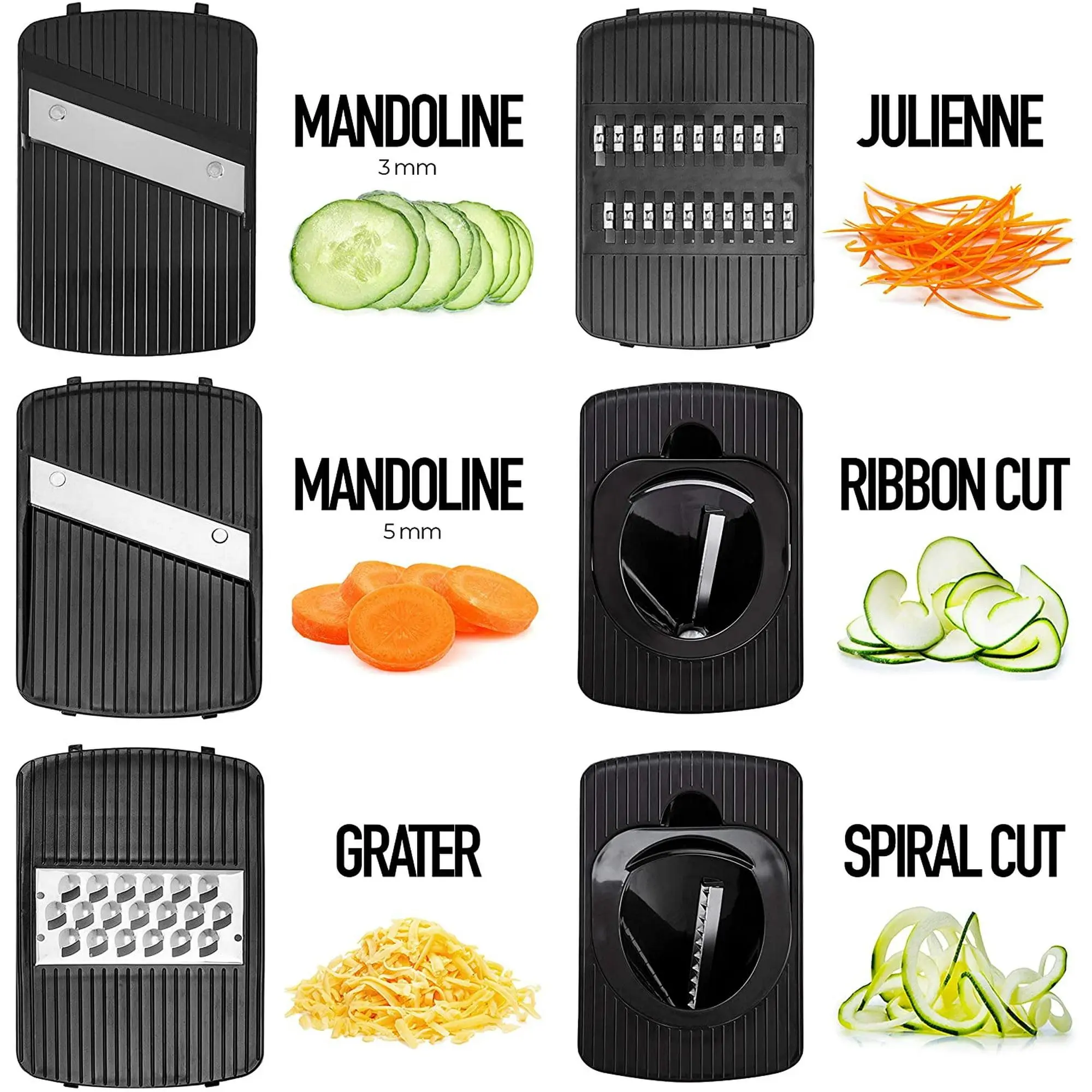 1️⃣ 6 Interchangeable Blades – Slice, grate, and even make zoodles or veggie pasta with ease! Perfect for salads, meal prep, and more.