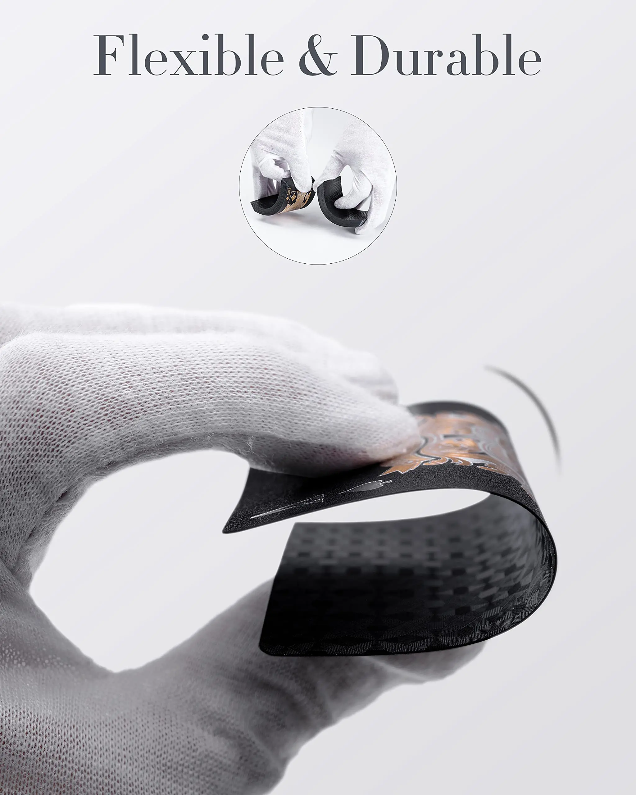 These I loved! Looks great and very tough, high quality. Way less slippery than the black ones and easier to read also! Recommend the gold ones over the black cards.