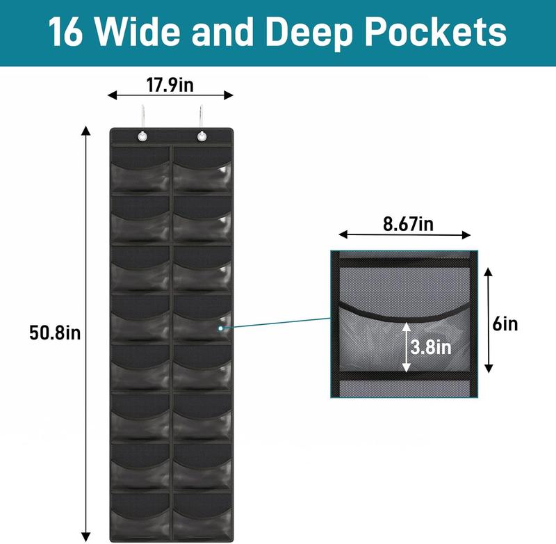 ·Quick, Tool-Free Installation No tools needed! Simply hook the organizer over any standard door, or wider doors, using the included metal hooks. Designed to be easily moved, it fits perfectly in closets, bedrooms, and entryways.