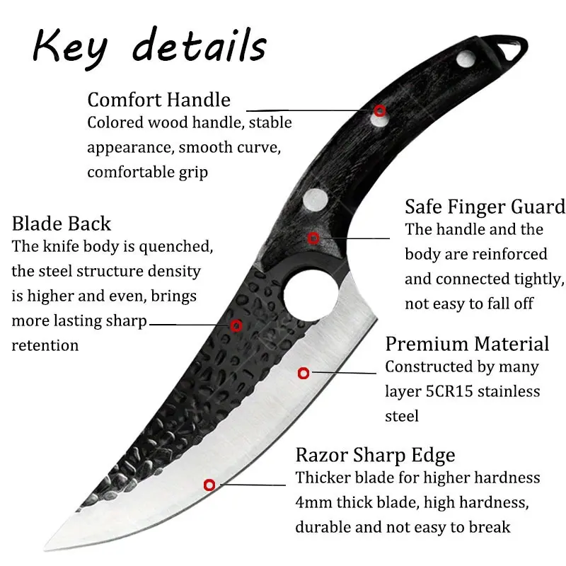 Portable black kitchen Knife Cutting Meat Boning and Peeling Knife Small Curved Knife Killing Fish Pig Sheep Cutting Pork Fruit Knife Barbecue Knife