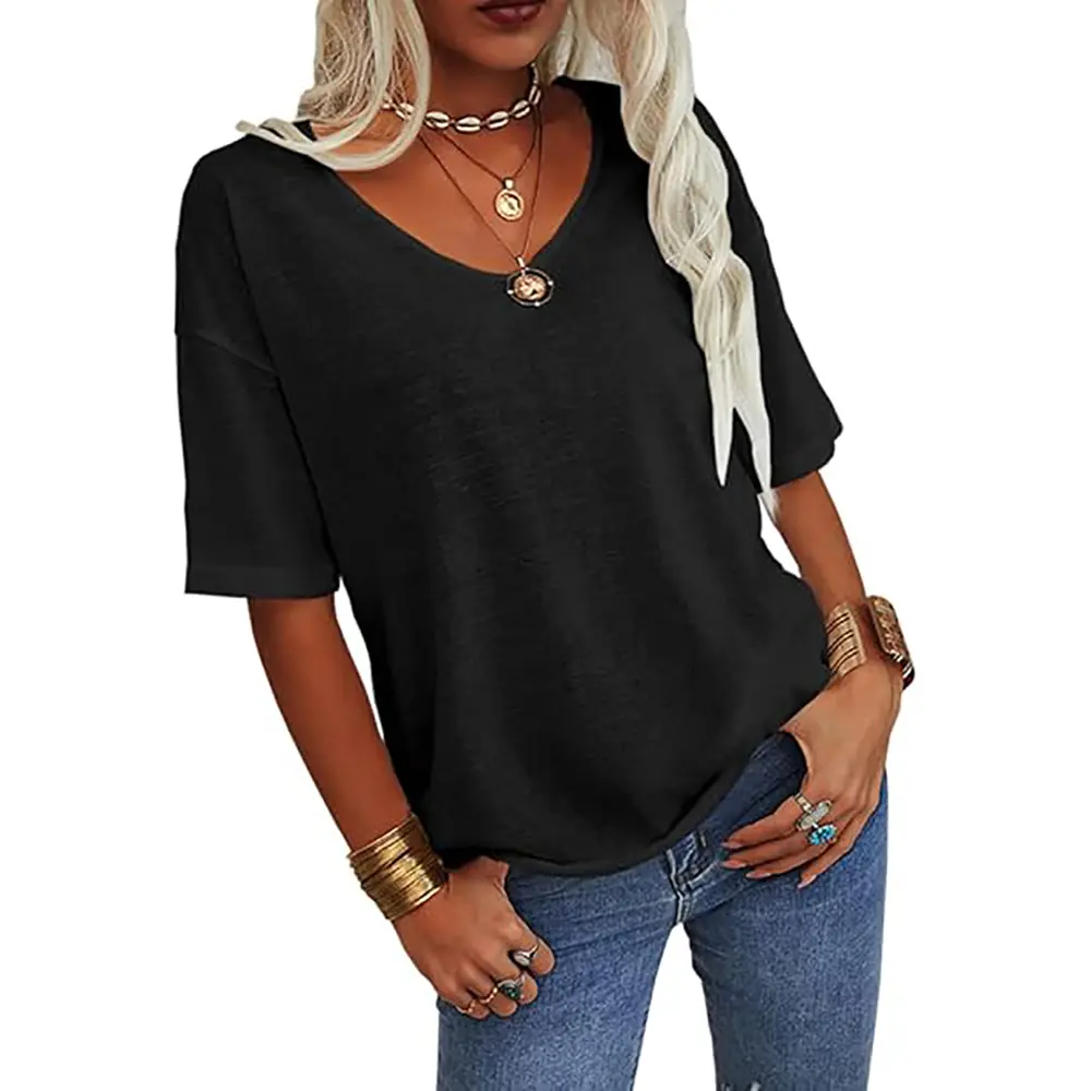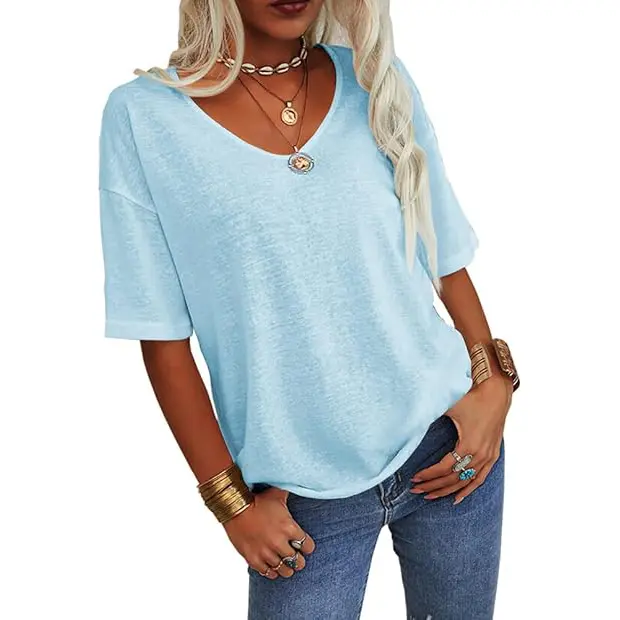 ·Features: Summer T shirt tops, V-Neck, Half sleeves,Solid color,loose fit, basic,simple casual style and never out of fashion.