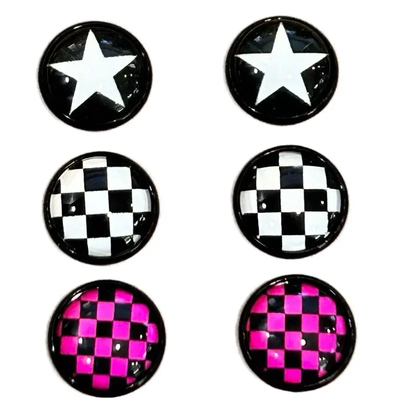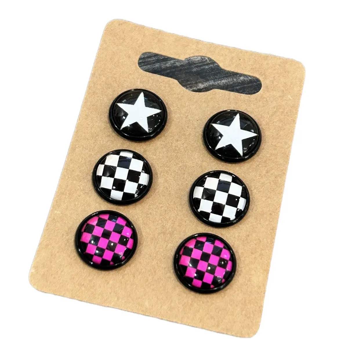 Checkered Star Cabochon Stud Earrings Set 12mm - Fashion Accessory new trend creative stud fashion fashion jewelry trendy