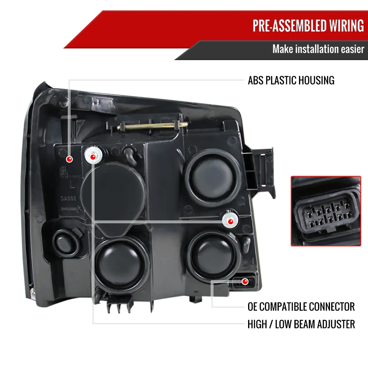 ·Professional installation is highly recommended Vehicle Fitment: 2002-2006 Cadillac Escalade models with OEM Halogen headlights only (Not compatible on models with OEM Xenon headlights)