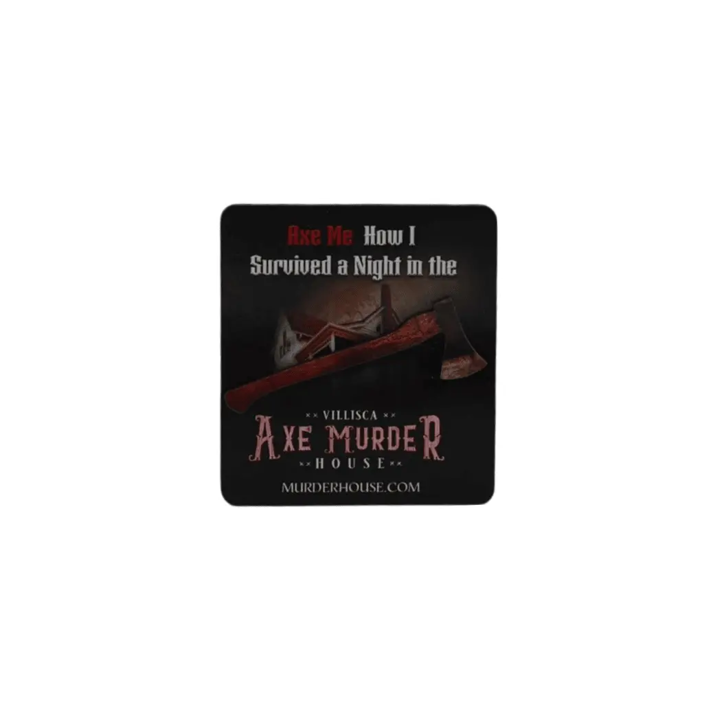 Embrace the chilling history of the Villisca Axe Murder House with this striking Square Shaped Magnet. Designed to capture the eerie essence of the 1912 murders, this magnet is perfect for true crime enthusiasts, paranormal fans, and collectors alike. Add a touch of macabre history to any metal surface with this captivating and functional accessory.