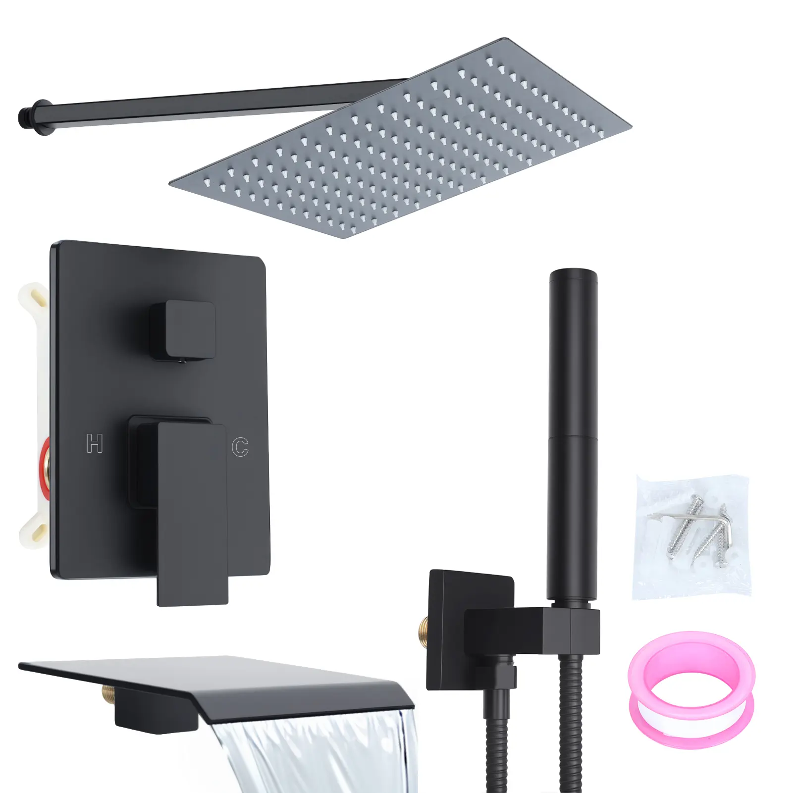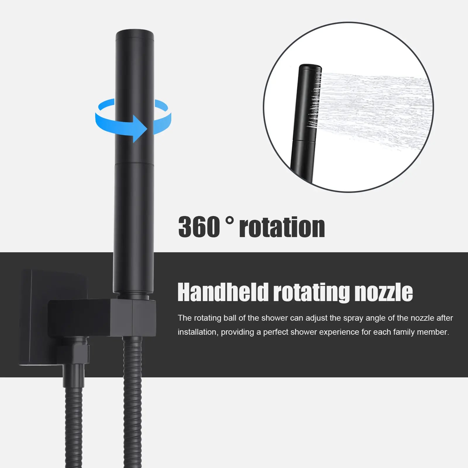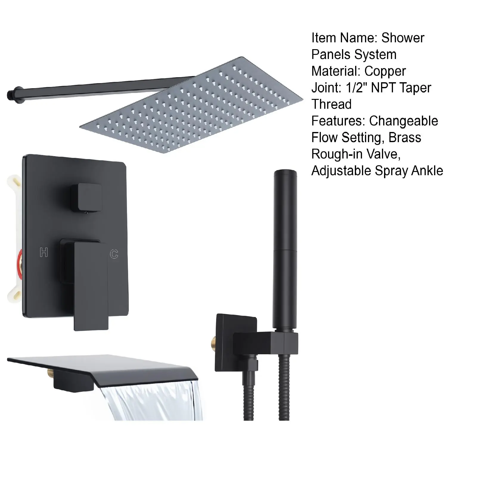 Wall Mounted Rain Shower Faucet System Set with Handheld Rotary Sprayer Head, Changeable Flow Setting Brass Rough-in Valve 12 Inch Large Shower Head Shower Panel Tower System