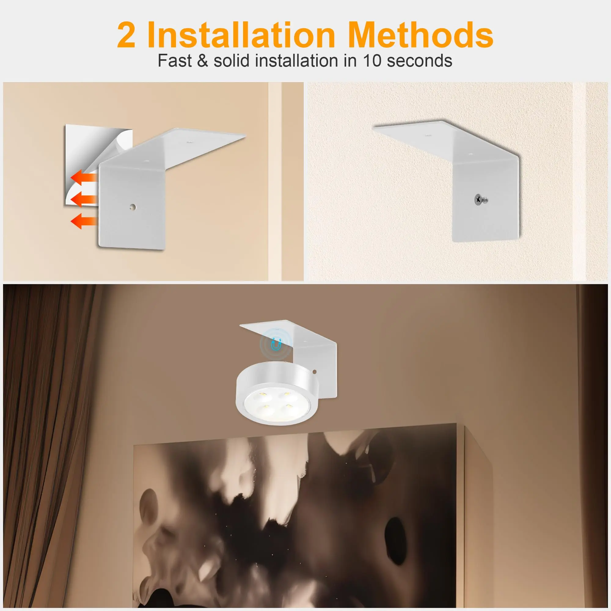 ·Material Completely Upgraded: We understand the needs of users, so we equip you with stronger double-sided adhesive and sturdy bracket. Installation is very easy, no tools and wiring required. It will not damage the walls of your home