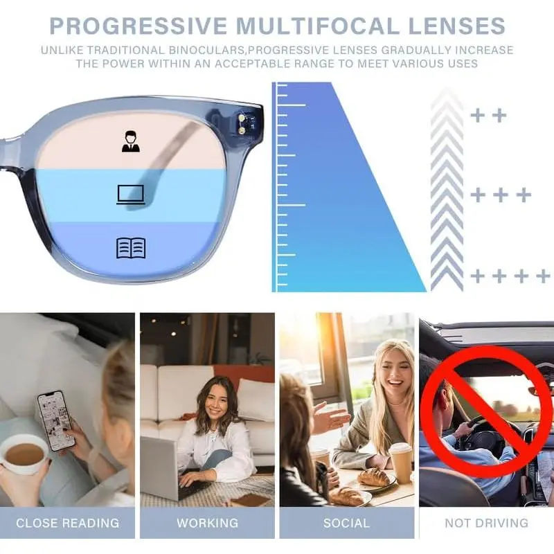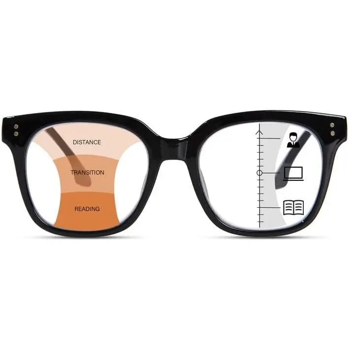 Progressive Multifocus Reading Glasses for Women Men Oversized Anti Blue Light Blocking Readers Square Eyeglasses