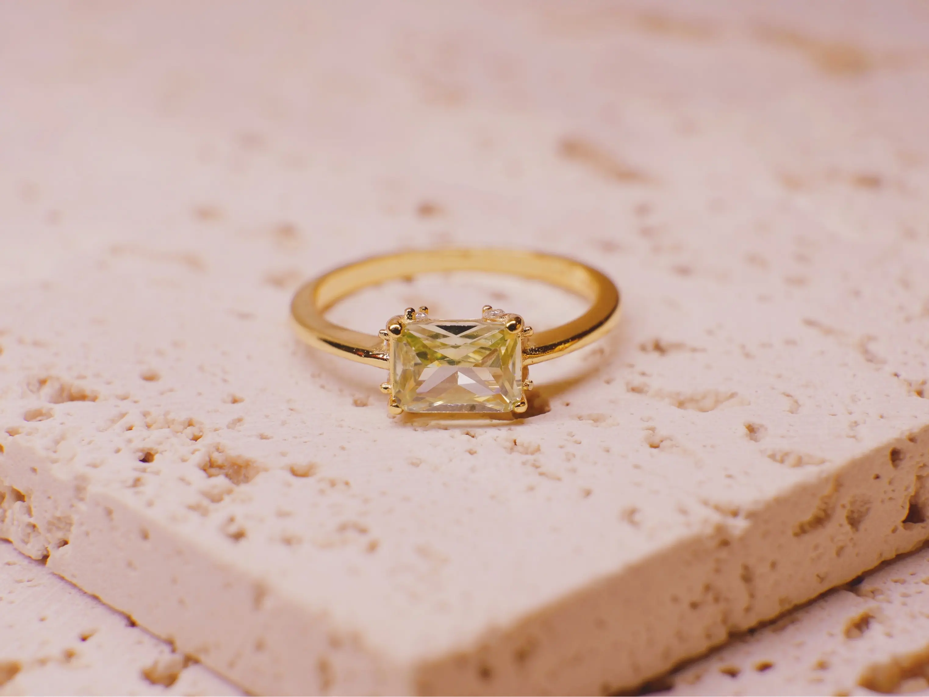 18K Gold-Plated Light Green Cubic Zirconia Ring in 925 Sterling Silver – Peridot August Birthstone-Inspired Jewelry