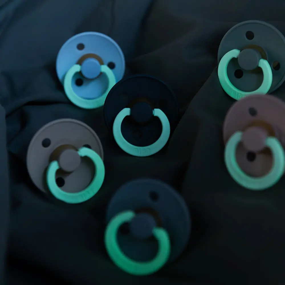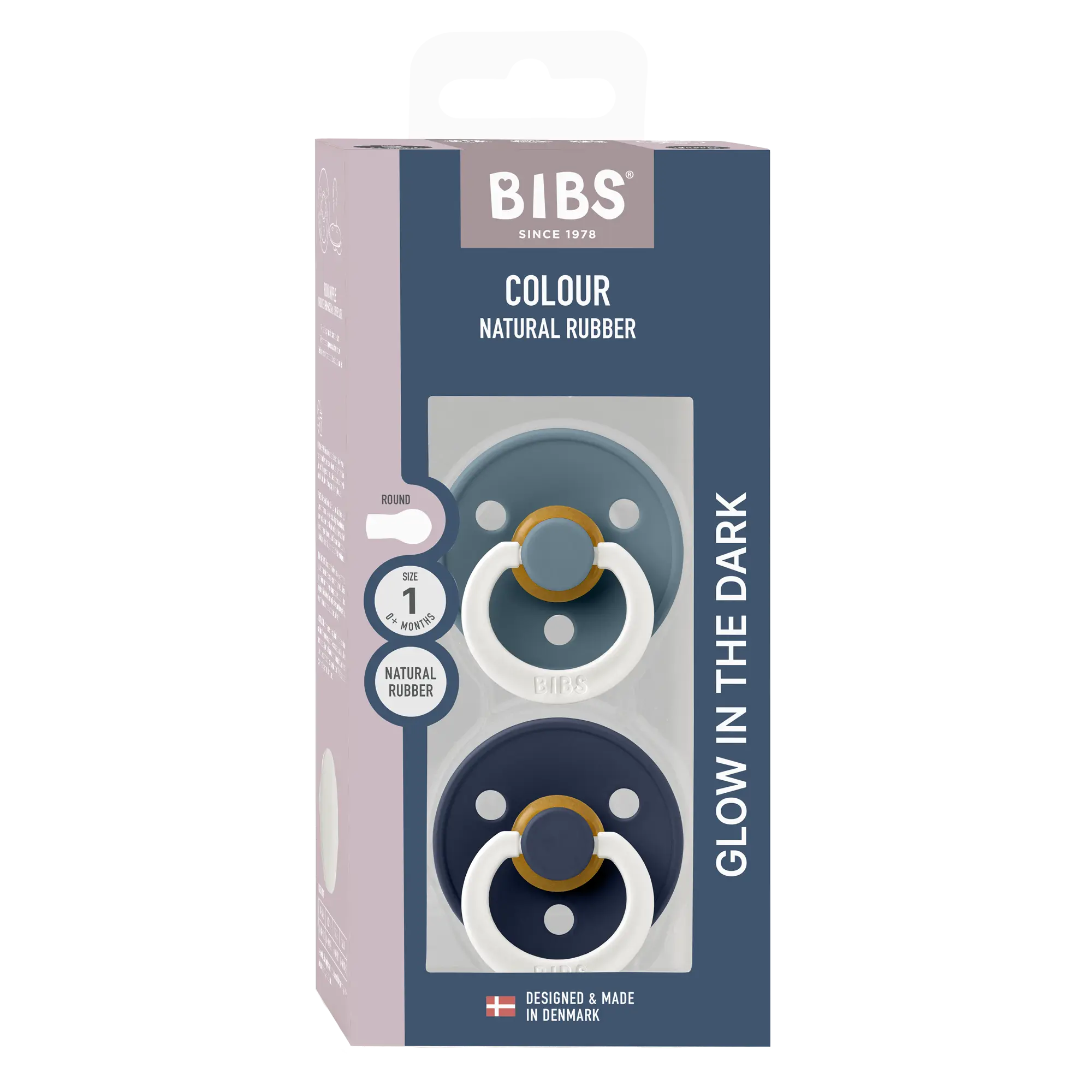 🌟 BIBS Baby Colour Pacifier Dummy Glow 2 Pack - Petrol/Deep Space 🌟