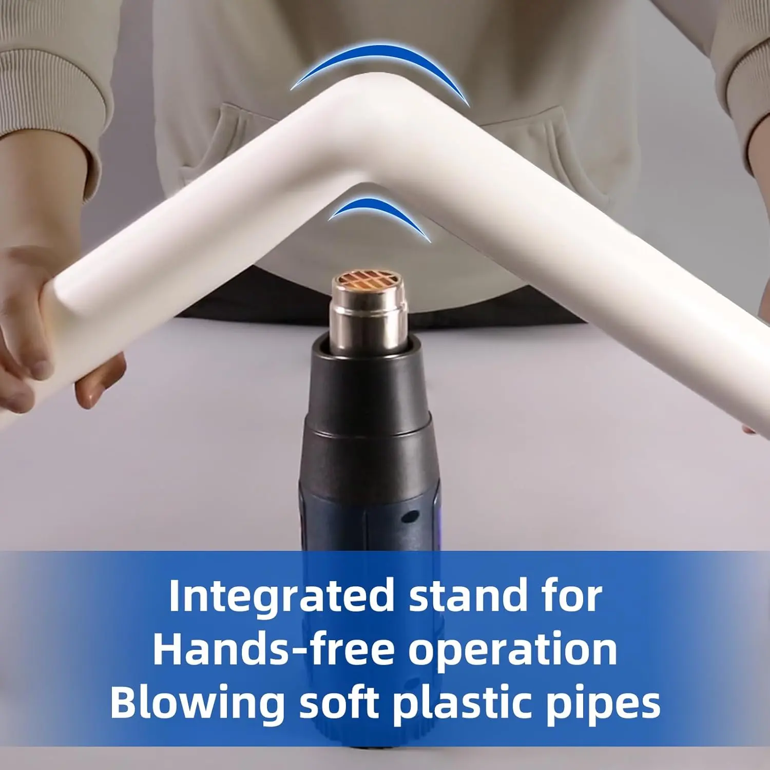 【Hands-free & Portable Operation】The Foldable metal stand allows the heat gun to stand smoothly upright on a tabletop, freeing up your hands . And it allows the heat gun to cool down safely after finishing operation. The ergonomic handle design fits the palm, providing comfort and reducing fatigue. The heat gun also comes with a hook for easy storage