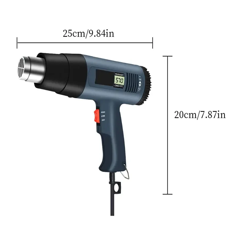 【Professional Precise Temp Control】 Stepless Temperature Regulation and Digital Display Heat Gun features Accurate Temperature Adjustment for Various Projects that require different specific levels of heat Different temperatures and air volumes makes it a perfect heating tool for your Crafts& Home Improvement Tasks.