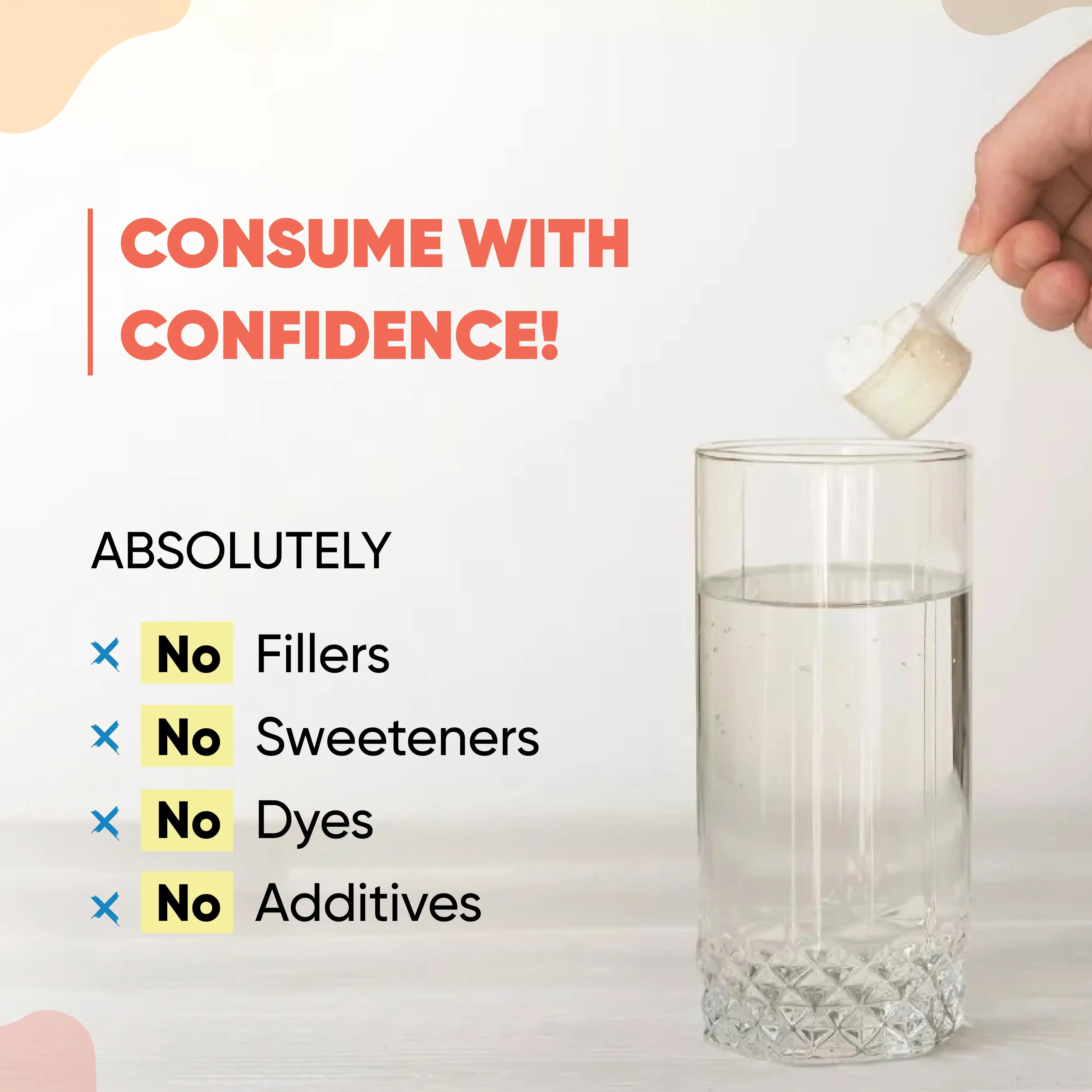 ·Unflavored and free from sweeteners, fillers & dyes