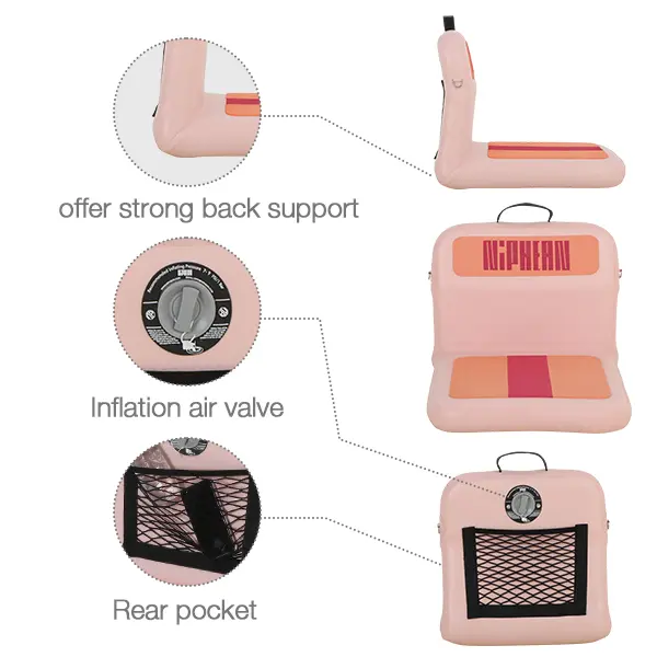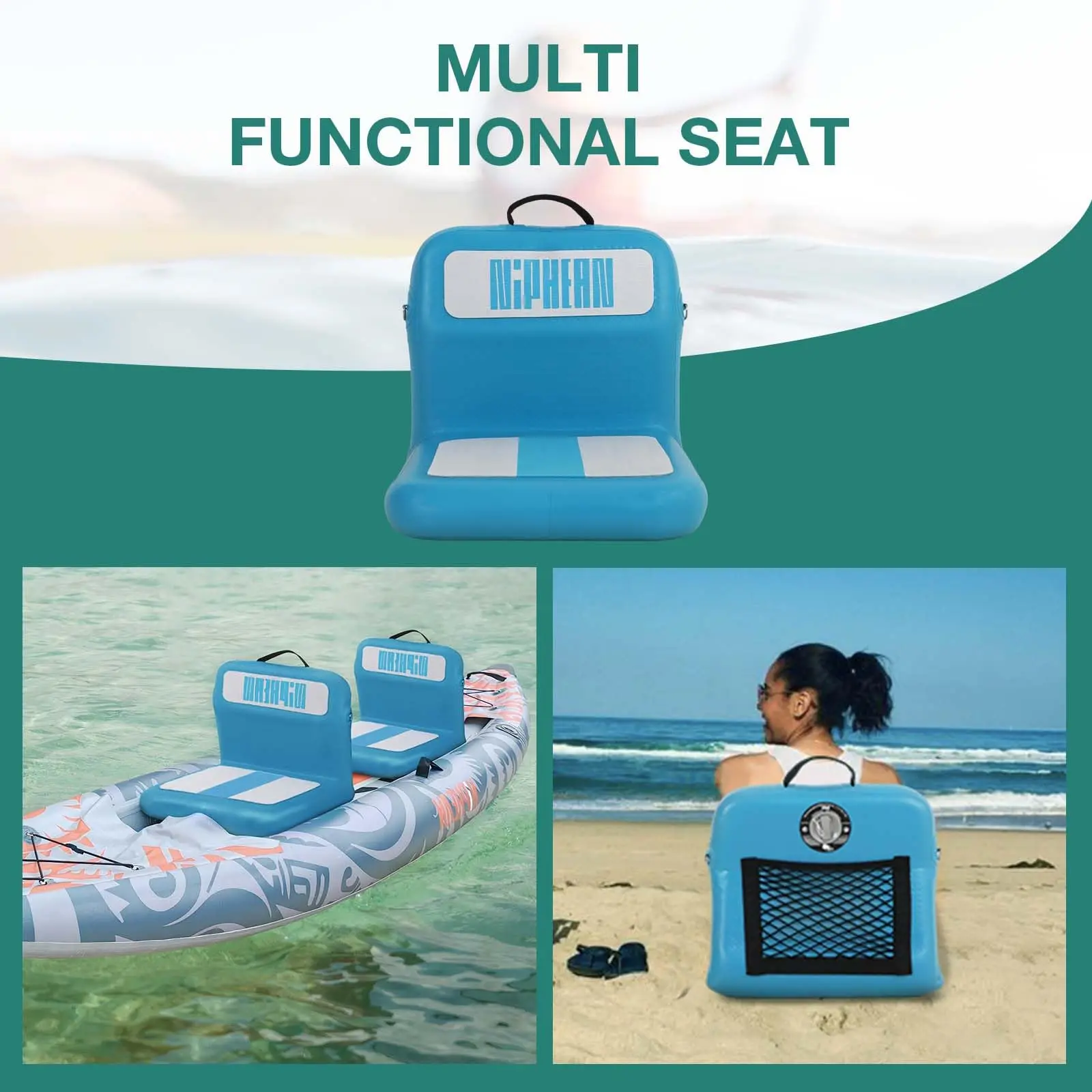 ·【Durable & Practical】Quality is our top priority. Niphean seat for paddle board is designed to withstand countless water adventures. The inflatable structure of our kayak seats allows easy storage by deflating and rolling it up. A rear pocket conveniently holds belongings, while the head handle makes carrying effortless. The EVA surface on the backrest and cushion prevents slipping, ensuring a safer and more comfortable experience—Niphean canoe seat is your best choice for outdoor trips.