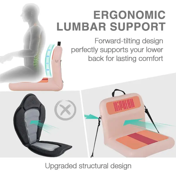 ·【Strap-Free Support】 Niphean paddle board chair features an inflatable structure that provides firm, secure support without the need for straps, unlike traditional seats that rely on 6 straps for stability. Our 2 matching adjustable straps are just needed to help keep your boat seat on the kayak from sliding. You will no longer face the hassle of complicated setups or cut your trip due to strap damage. With fewer parts to manage, you can focus more on enjoying your water time.