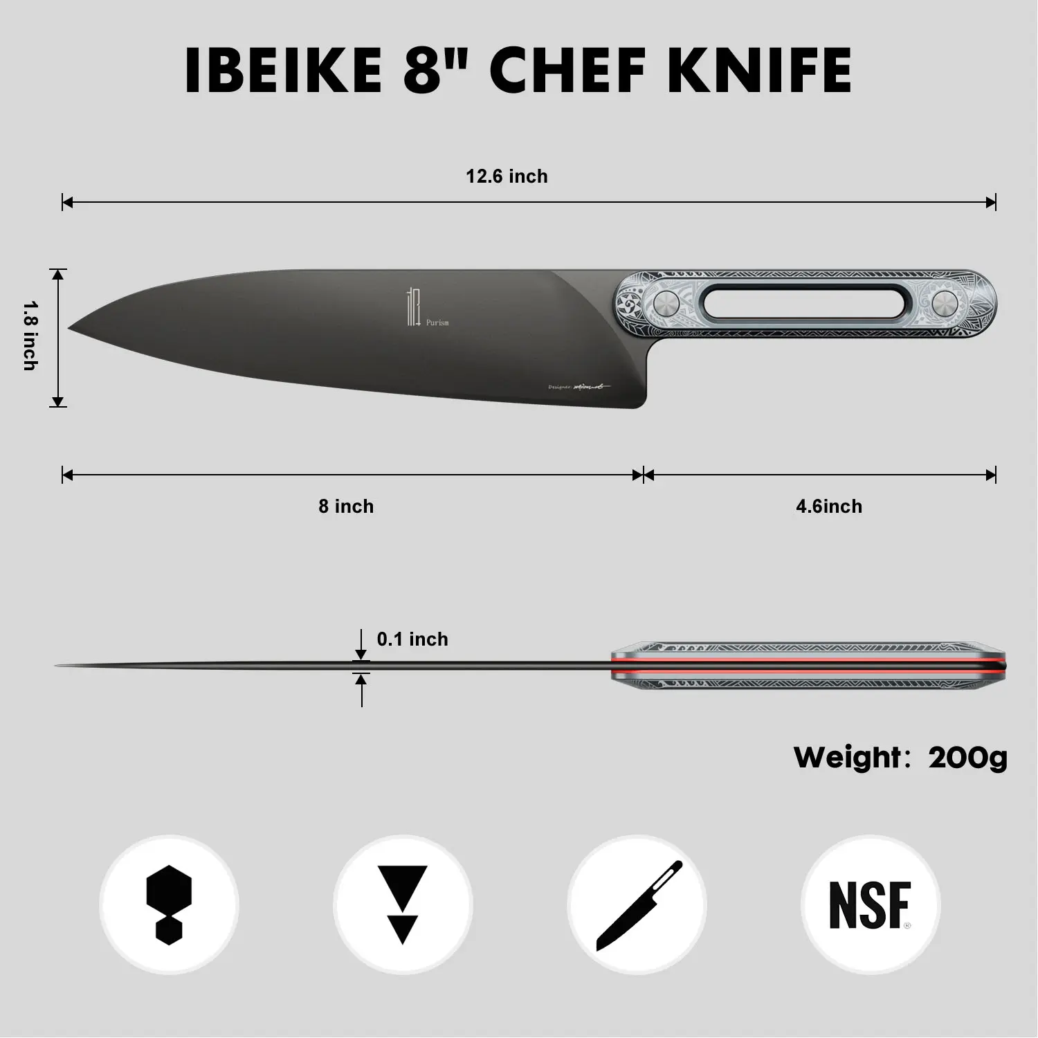 ·【Continuous Improvement, Quality Assurance】The surface of the kitchen knife's blade is stone-washed to prevent corrosion, rust, and sticking. All sharp edges are precision-rounded for safety. Every component is CNC-machined to 100% ultra-precise standards, ensuring the highest quality for the chef knife