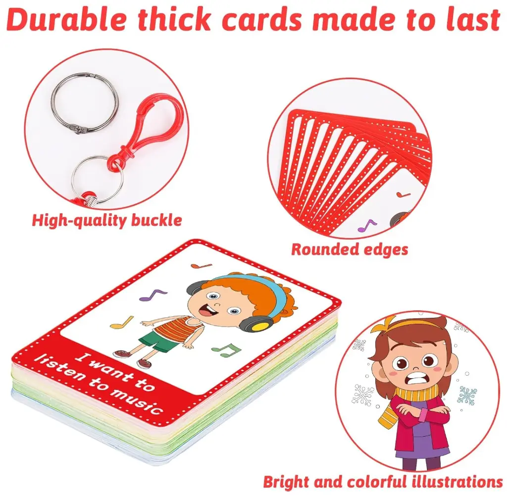·Quality Material:Our autism communication nonverbal communication cards are made of quality material.This type of material can withstand long-term use and frequent flipping, and is not easily damaged or worn out.The material of communication flash cards is smooth and easy to wipe and clean.