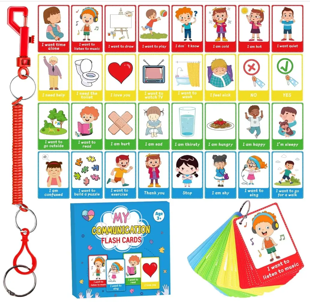 ·Communication Falsh Cards:Our autism communication visual aid cards set includes 40 pieces of cards,a ring to keep non verbal communication cards together and a retractable rope.With such a wide range of accessories,your child is able to express his or her own desires and needs.And the card will not be lost.