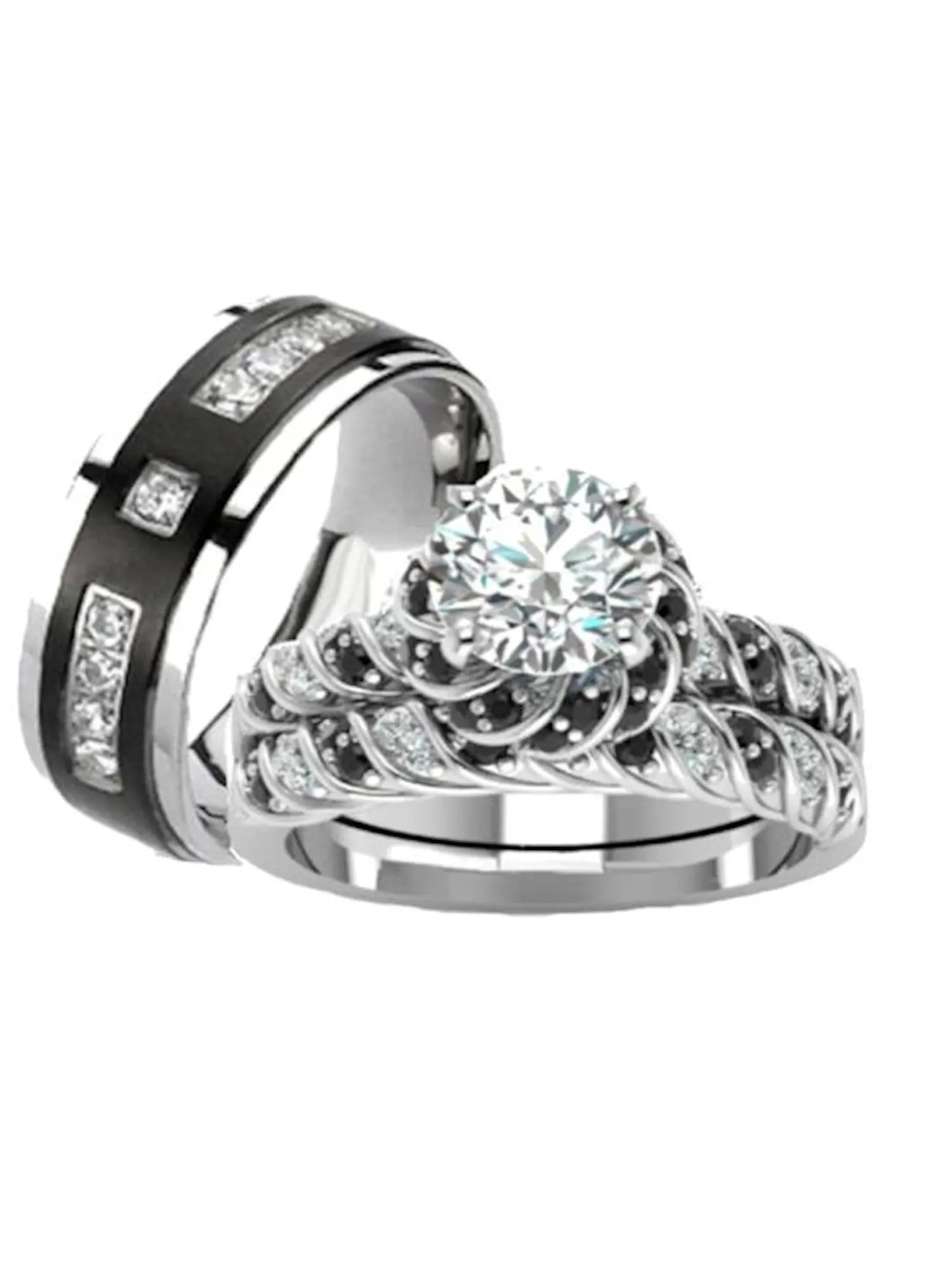His Hers Cz Wedding Ring Set Sterling Silver & Titanium Wedding Rings