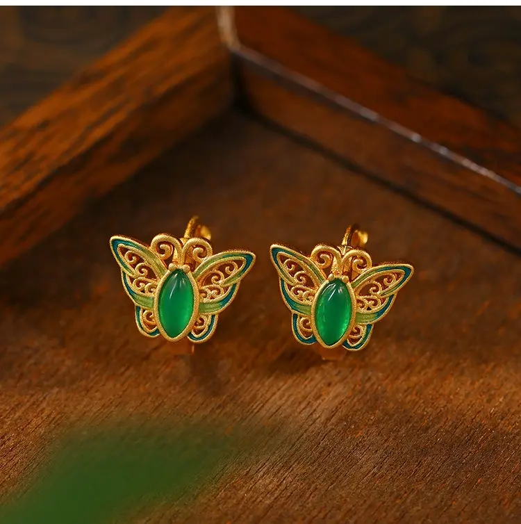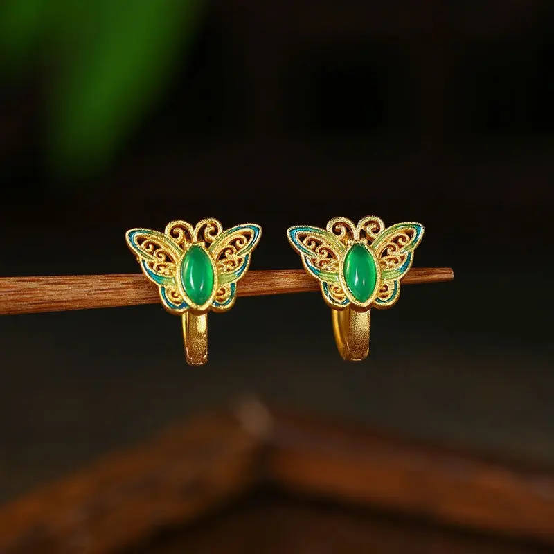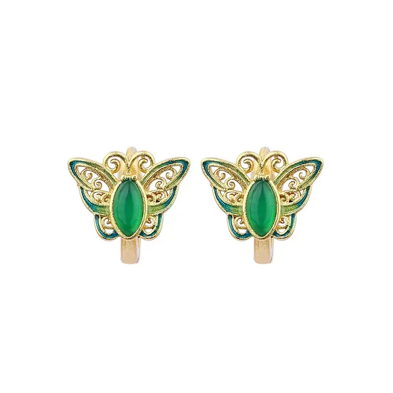 Jade earring ,retro and elegant butterfly ,for rich for charmful ,green nateral jade ,For Women Jewelry Gifts,Green Sterling Silver