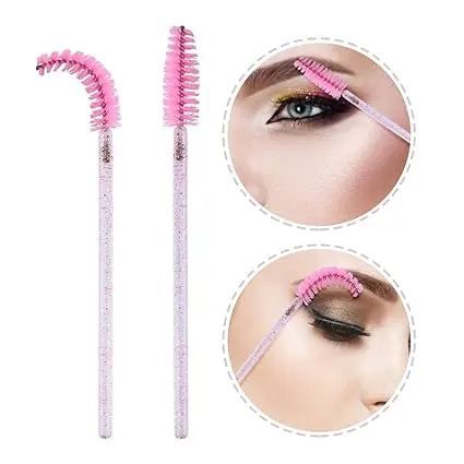 The mascara wands are made of a crystal handle and soft fiber bristles, with crystal glitter inside the solid shaft for a shiny look and sturdiness, and a smooth handle for a comfortable, easy hold. The spoolies brush head and handle are firmly linked and do not easy to fall off.